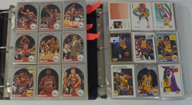 EST $250- $270, 2-ALBUMS FULL OF BASKETBALL CARDS from LATE 80's to 90's, PREMIUM INSERTS, STAR CARDS, ROOKIES, ALL MINT CONDITION
