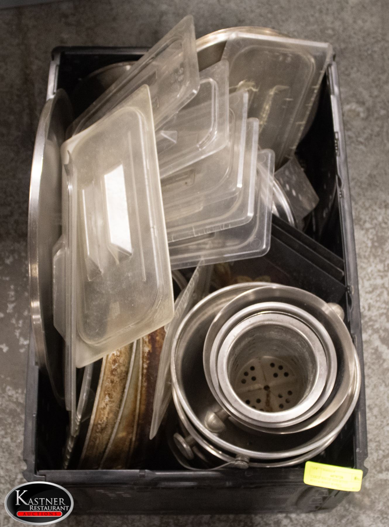 LARGE BIN OF ASSORTED RESTAURANT WARES