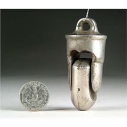 LARGE BLANK SHOOTER. BOMB40. Maker unknown. Circa 1900. Nickel-plated bomb that fires .22 caliber blanks. SIZE: 2-3/4" l. CONDITION: Excellent. MC 1-4159 (150-250)