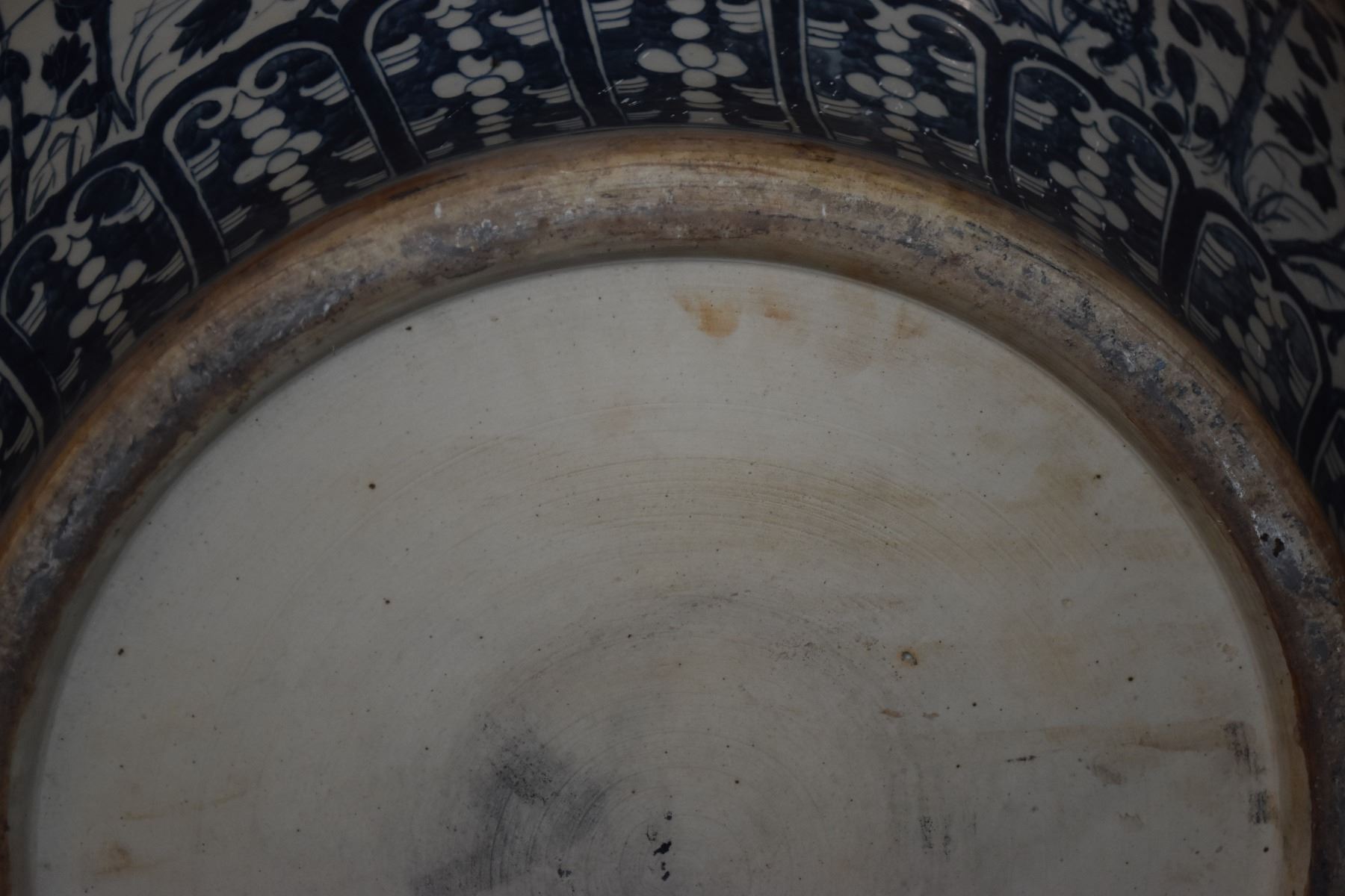 LARGE BLUE & WHITE PORCELAIN GARDEN JAR, DRAGON MOTIF (24" X 22")