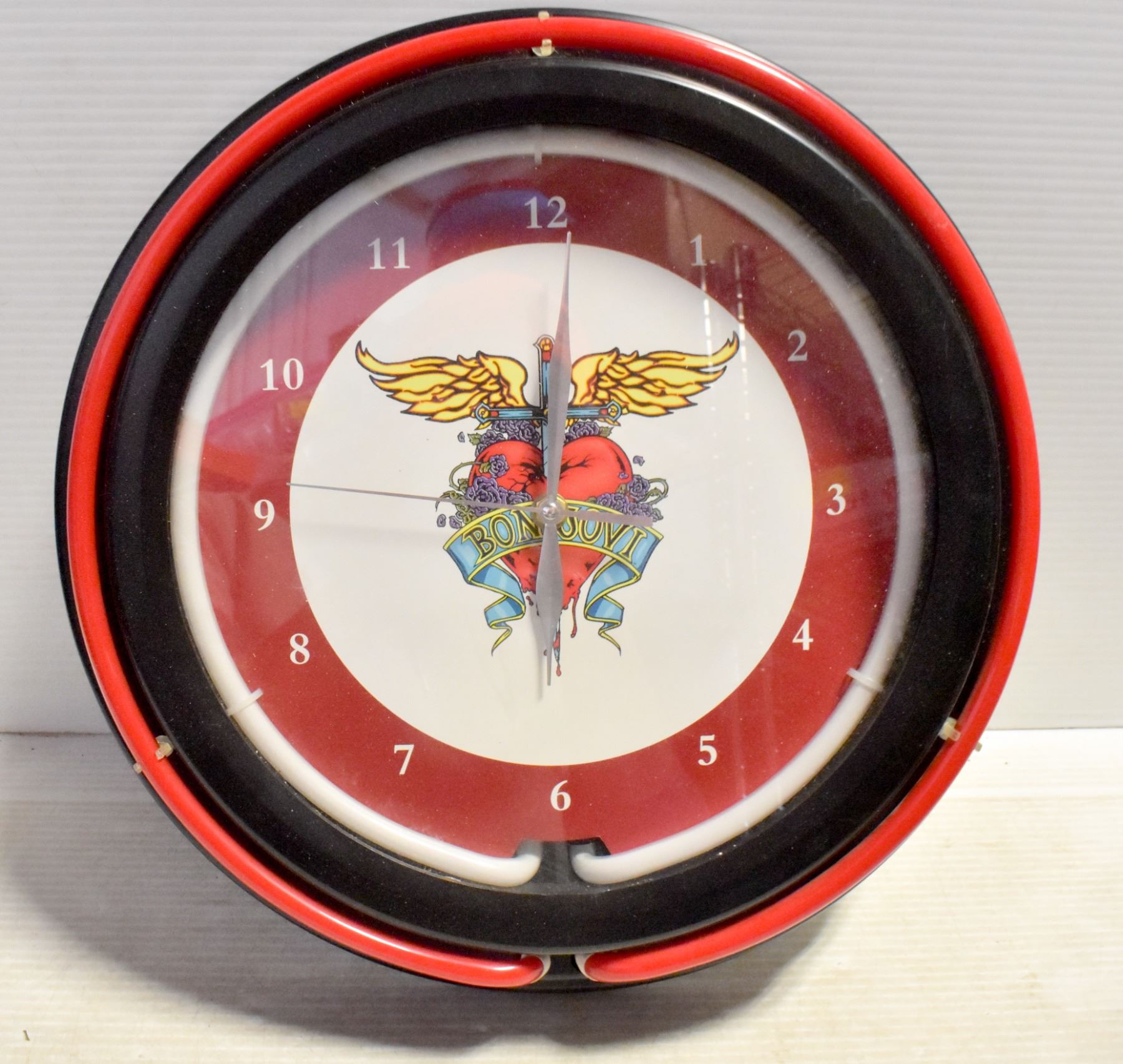 LARGE BON JOVI NEON WALL CLOCK WORKS GREAT