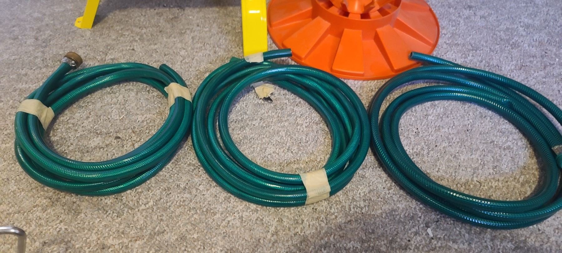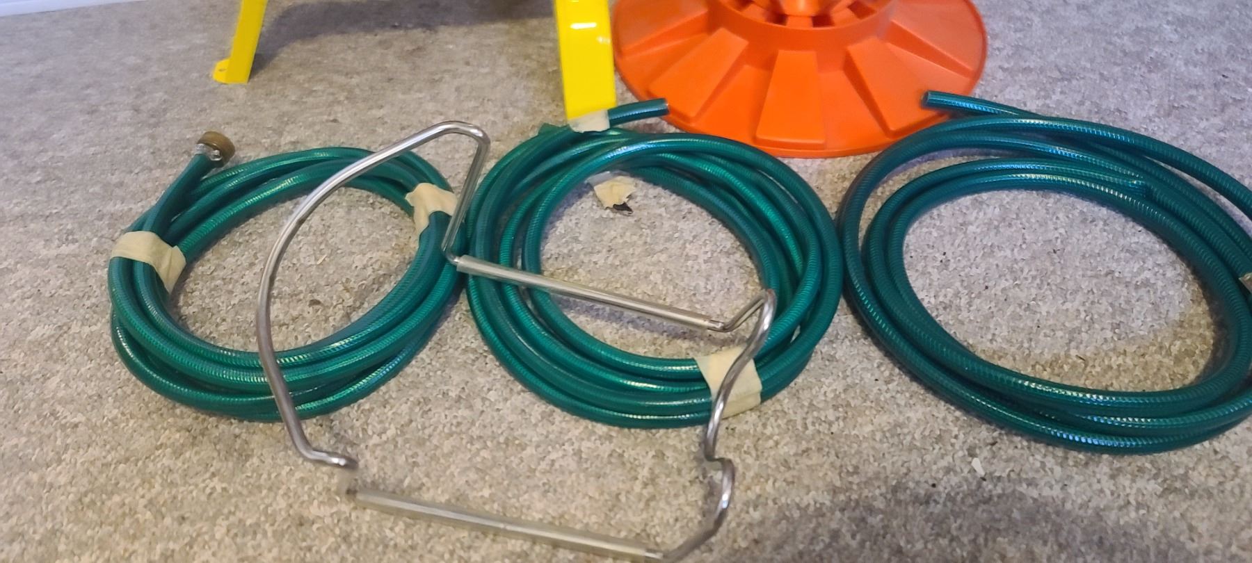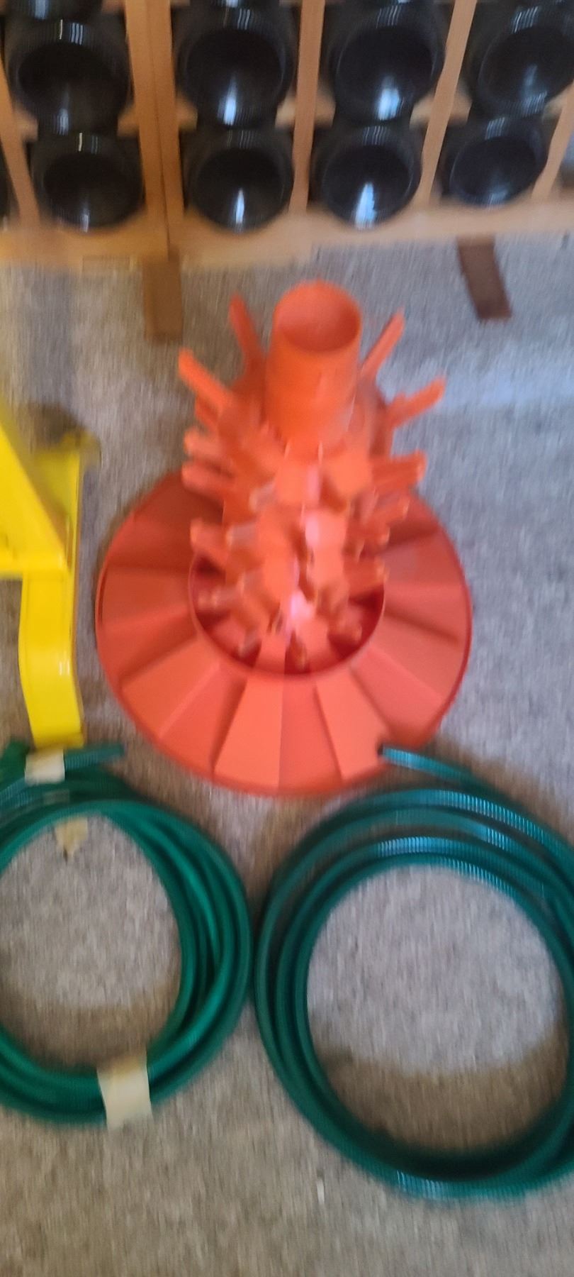 LARGE BOTTLE CAPPER PRESS, BOTTLE DRYING STAND AND THREE HOSES