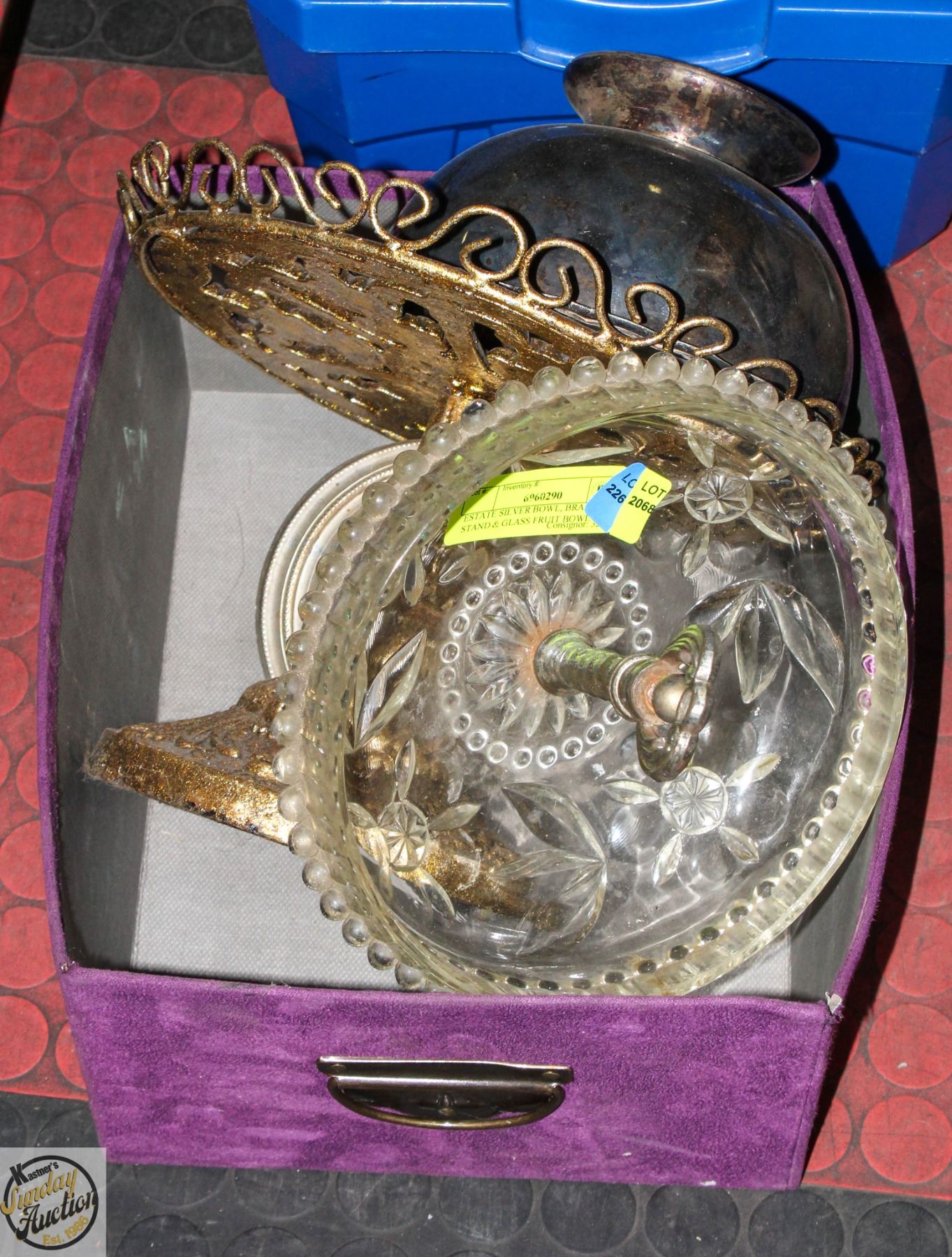 LARGE BOWL, BRASS STAND & GLASS FRUIT BOWL