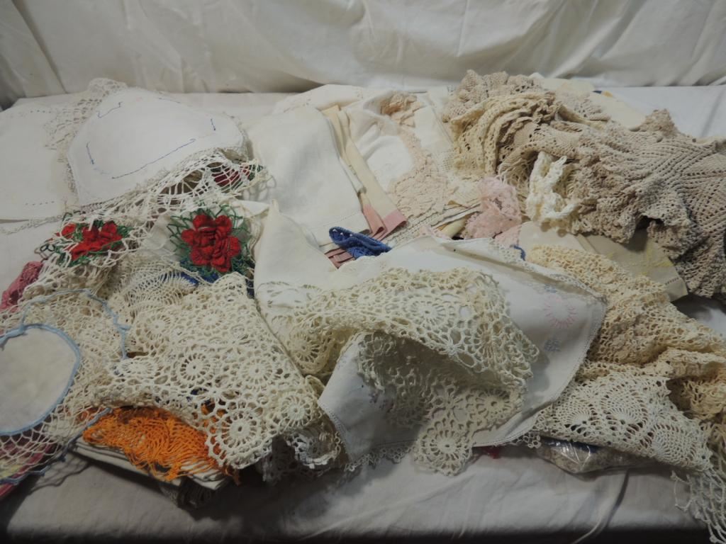 ANTIQUE FANCYWORK, DECORATIVE DOLLIES, FANCY WORK, VINTAGE LINENS, CROCHET, KNIT, LINEN, CROSS STITCHED, COLLECTIBLE, NEEDLEPOINT, AS SHOWN SEE PHOTO FOR MORE DETAILS.