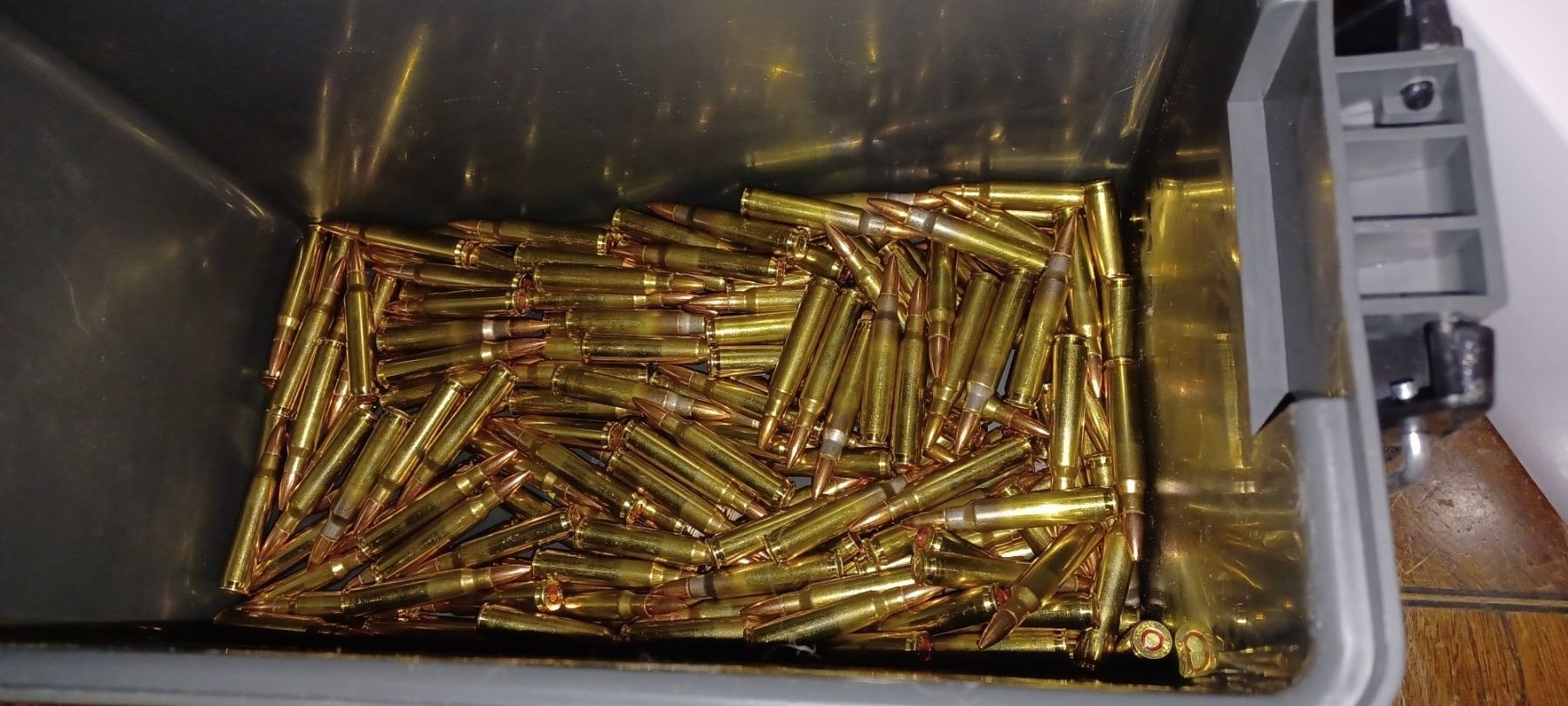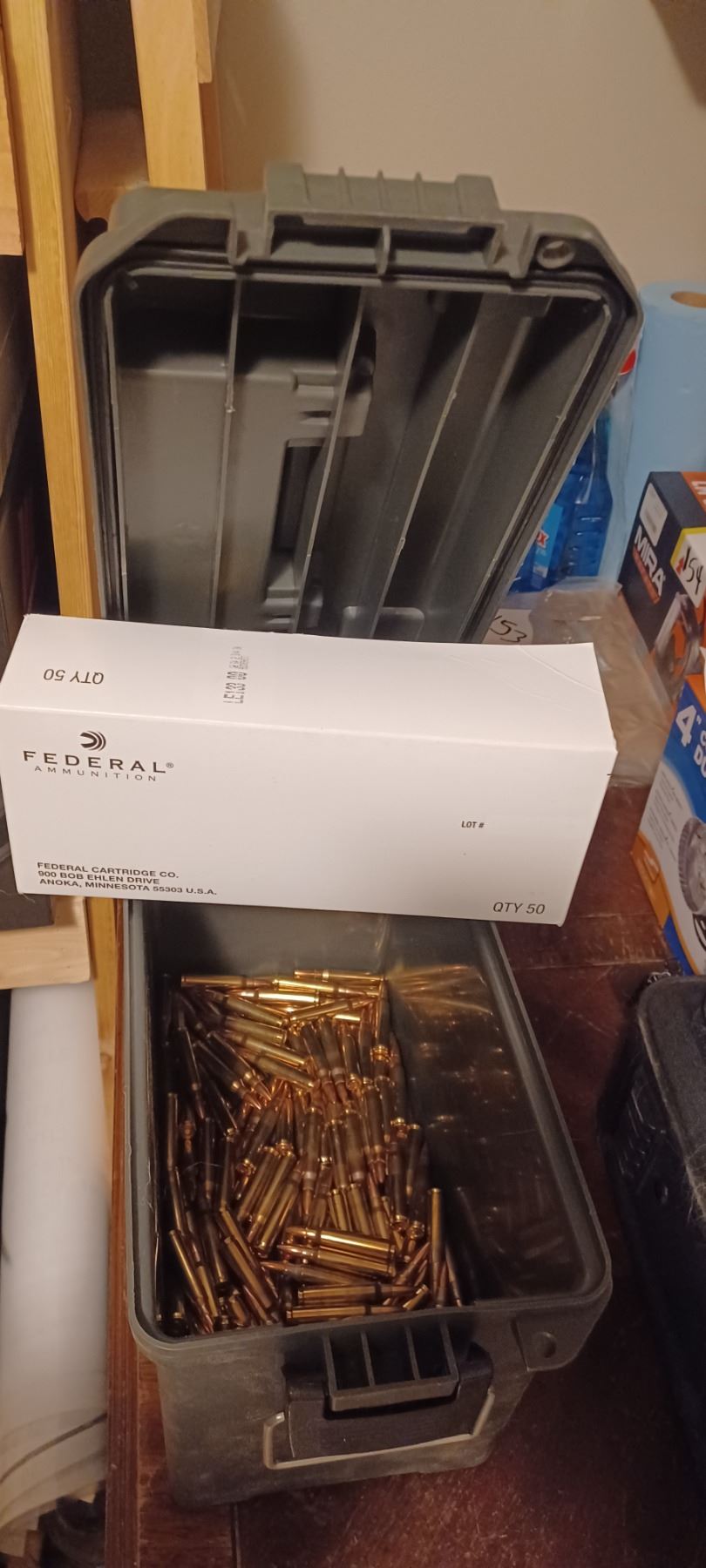 LARGE BOX OF 12GA SLUGS, APPROX 200- 223 SHELLS IN PVC AMMO BOX