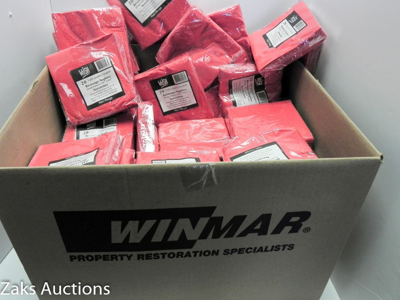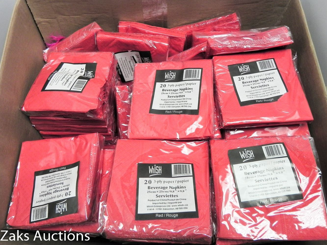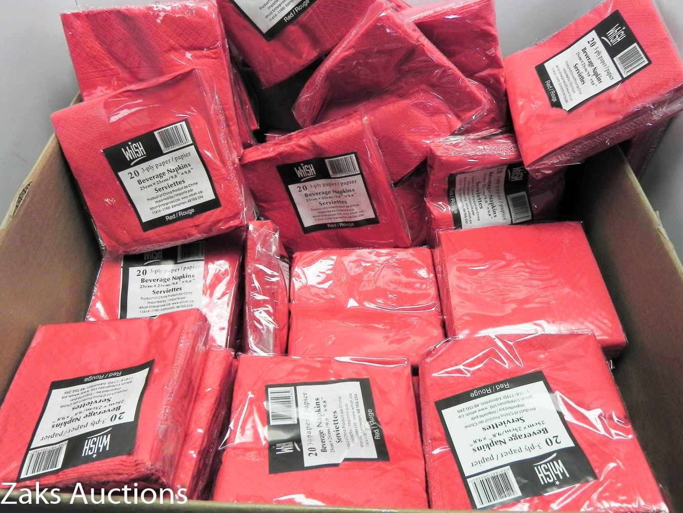 LARGE BOX OF 87 RED PAPER NAPKIN PKGS