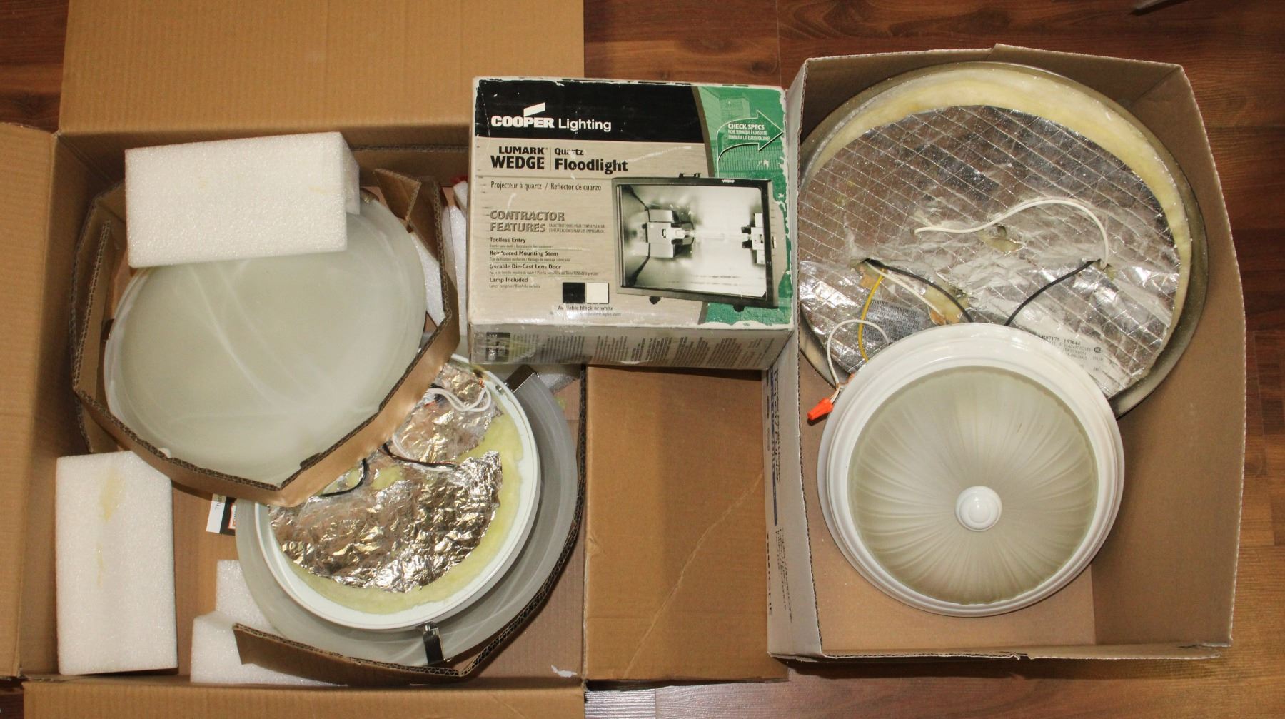 LARGE BOX OF ASSORTED LIGHT FIXTURES