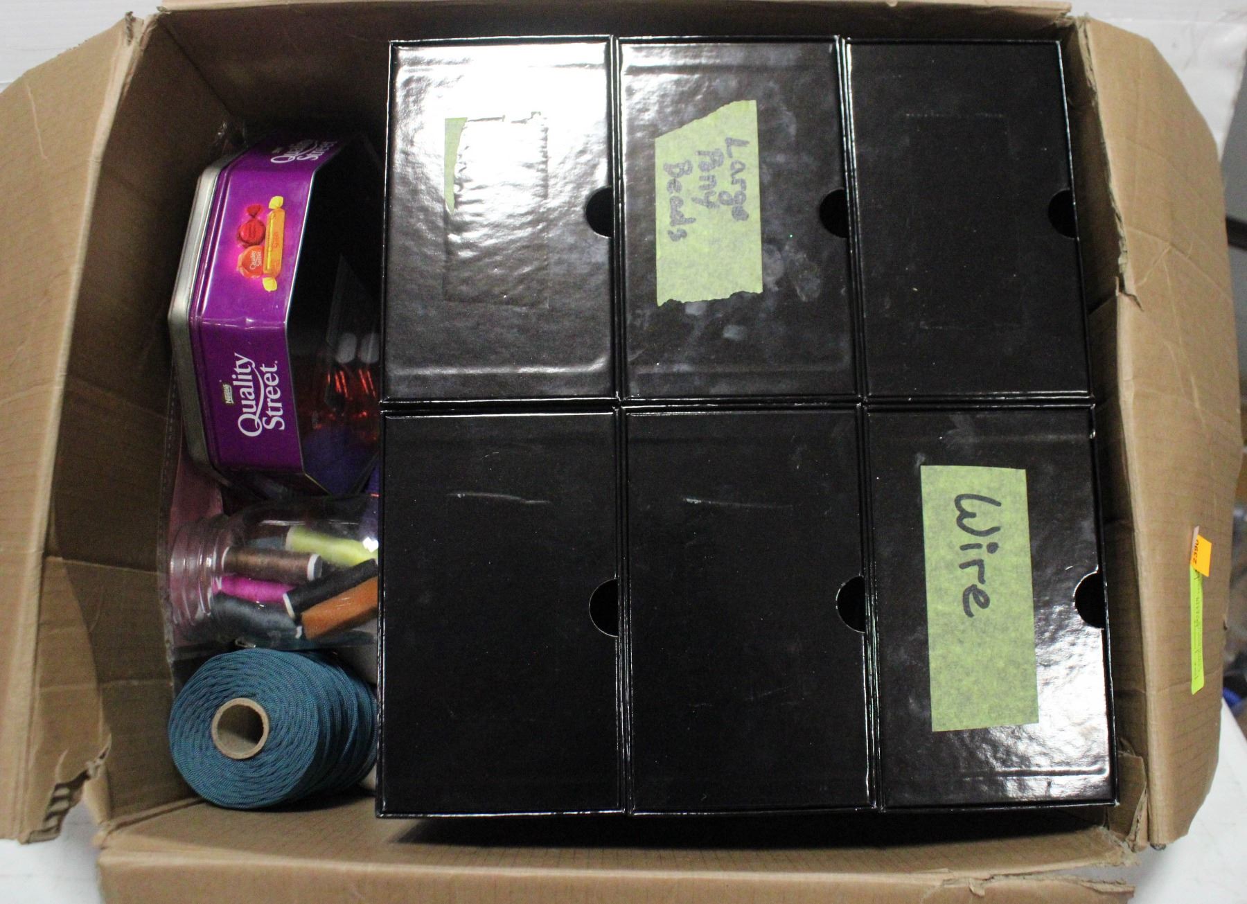 LARGE BOX OF CRAFT MATERIALS AND SUPPLIES