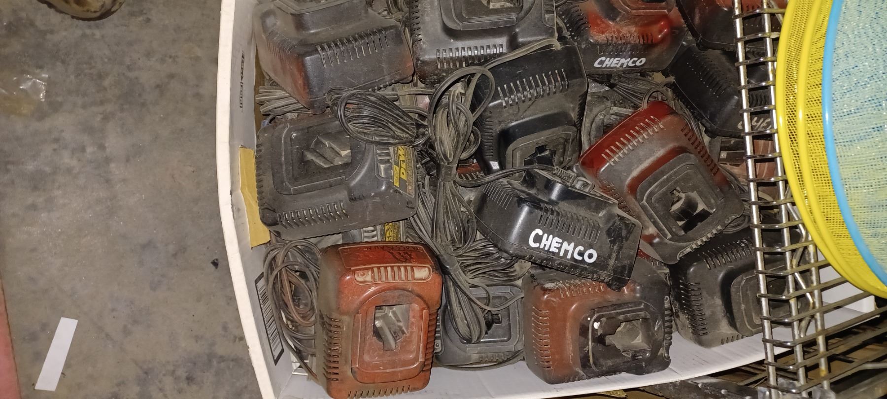 LARGE BOX OF DEWALT BATTERY CHARGERS