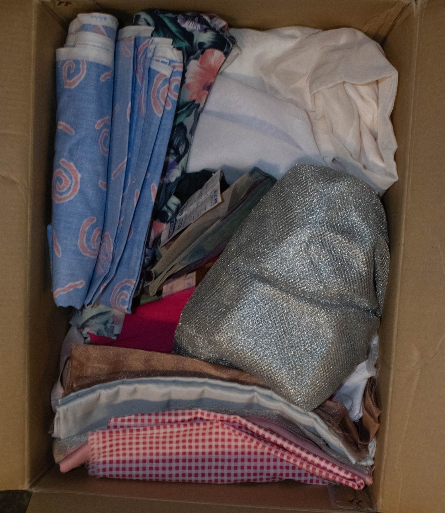 LARGE BOX OF FABRIC REMNANTS