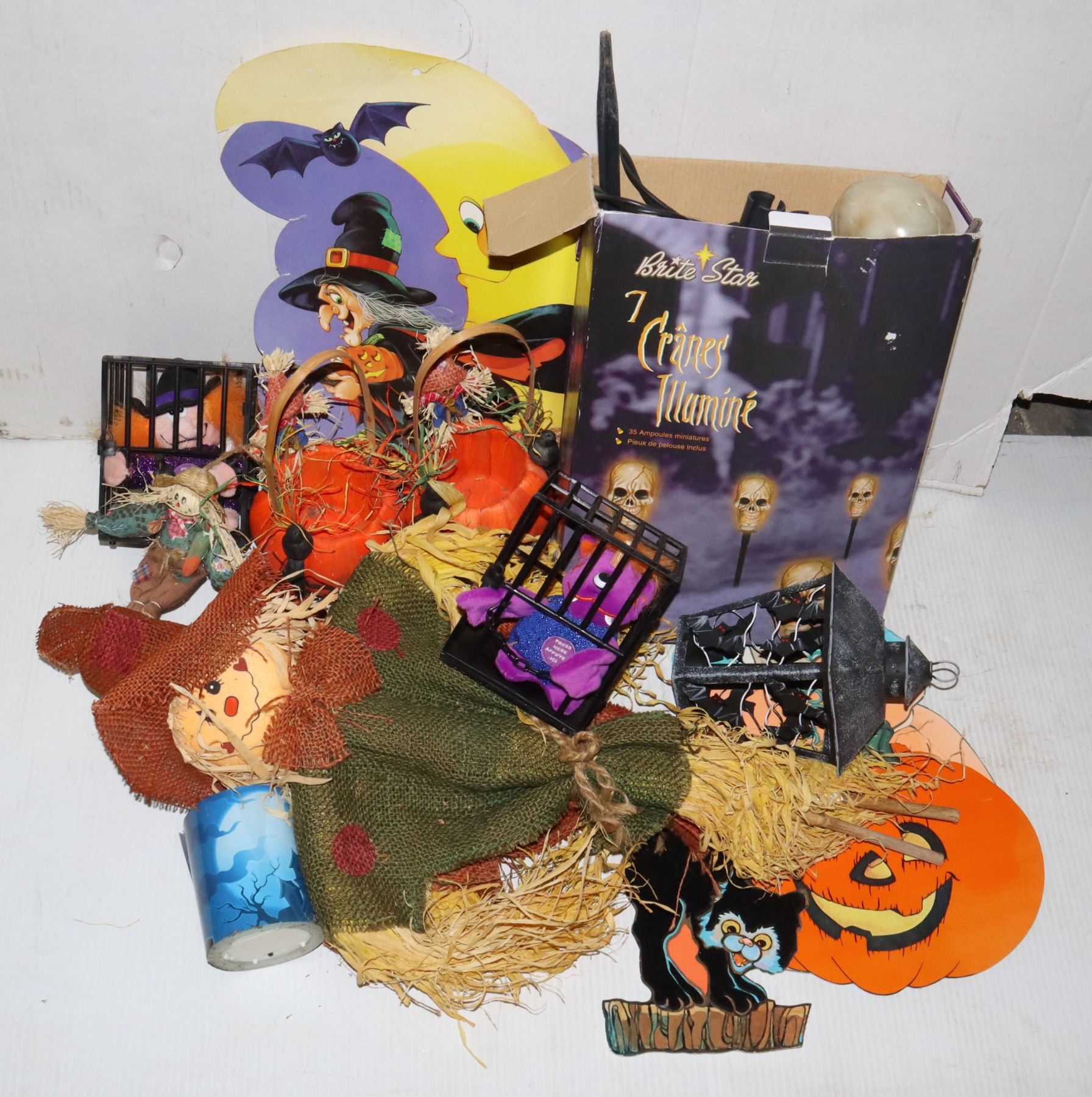 LARGE BOX OF FALL AND HALLOWEEN DECORATIONS