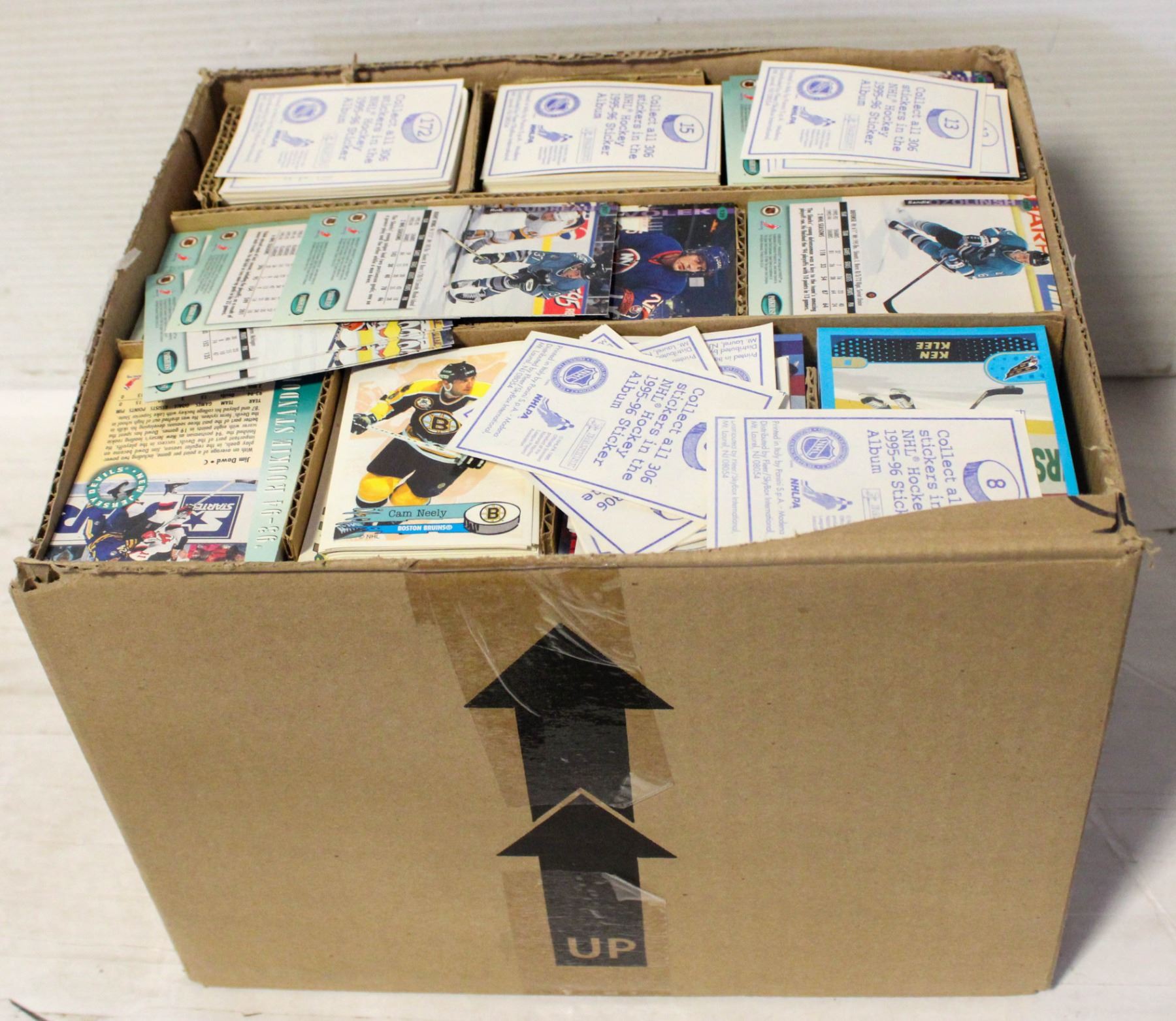 LARGE BOX OF HOCKEY CARDS AND STICKERS - MIXED
