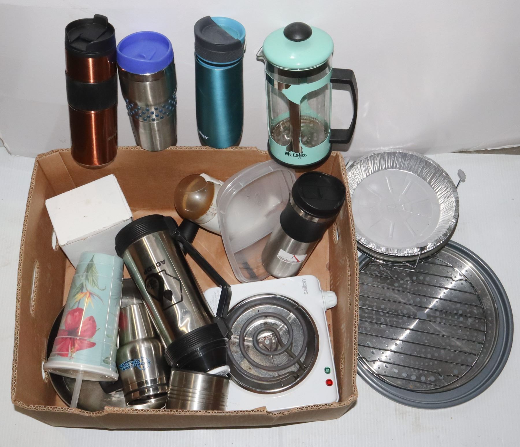 LARGE BOX OF KITCHEN ITEMS, MOSTLY CUPS