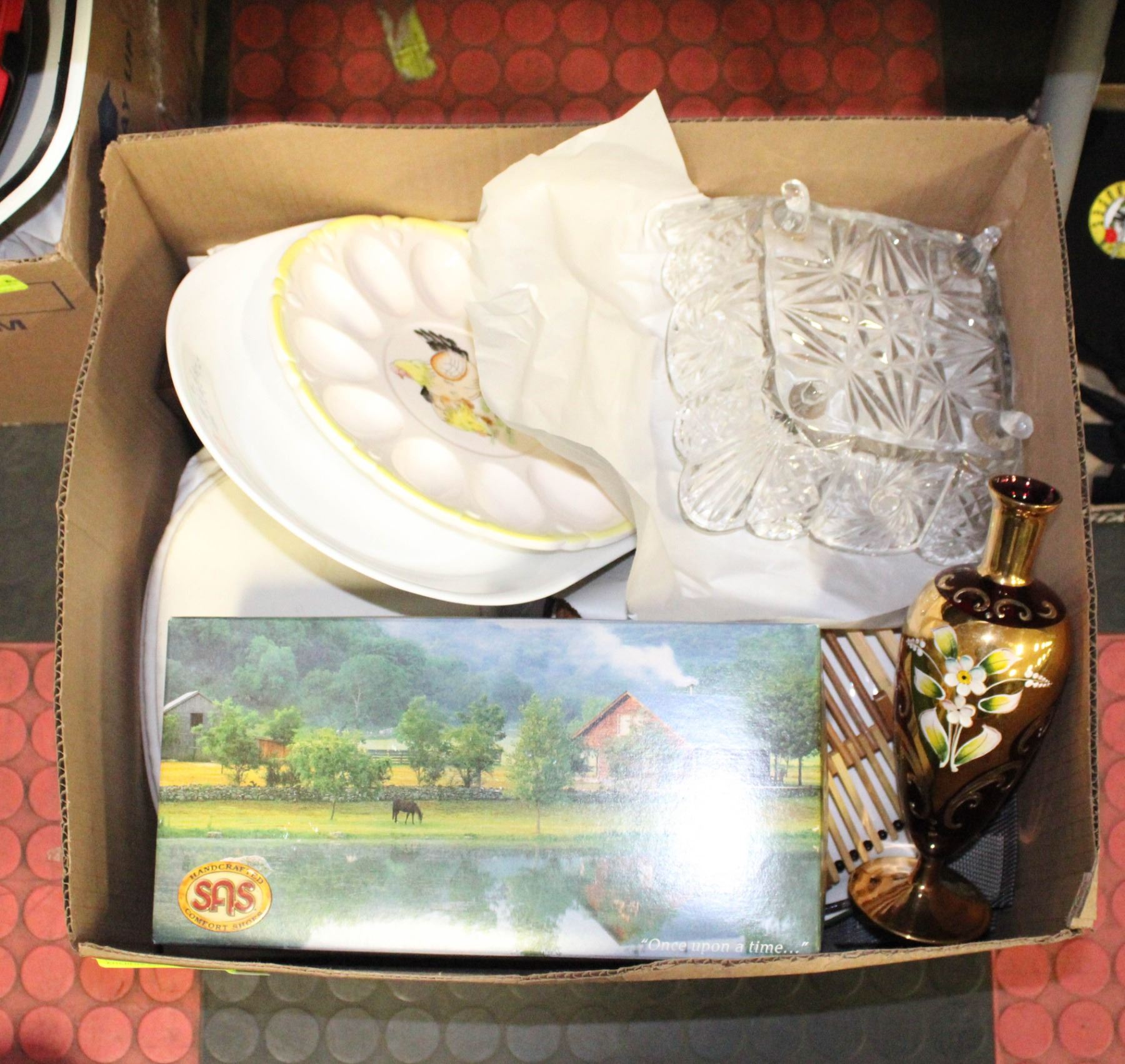 LARGE BOX OF MISC INCLUDES KITCHENWARE/GLASSWARE
