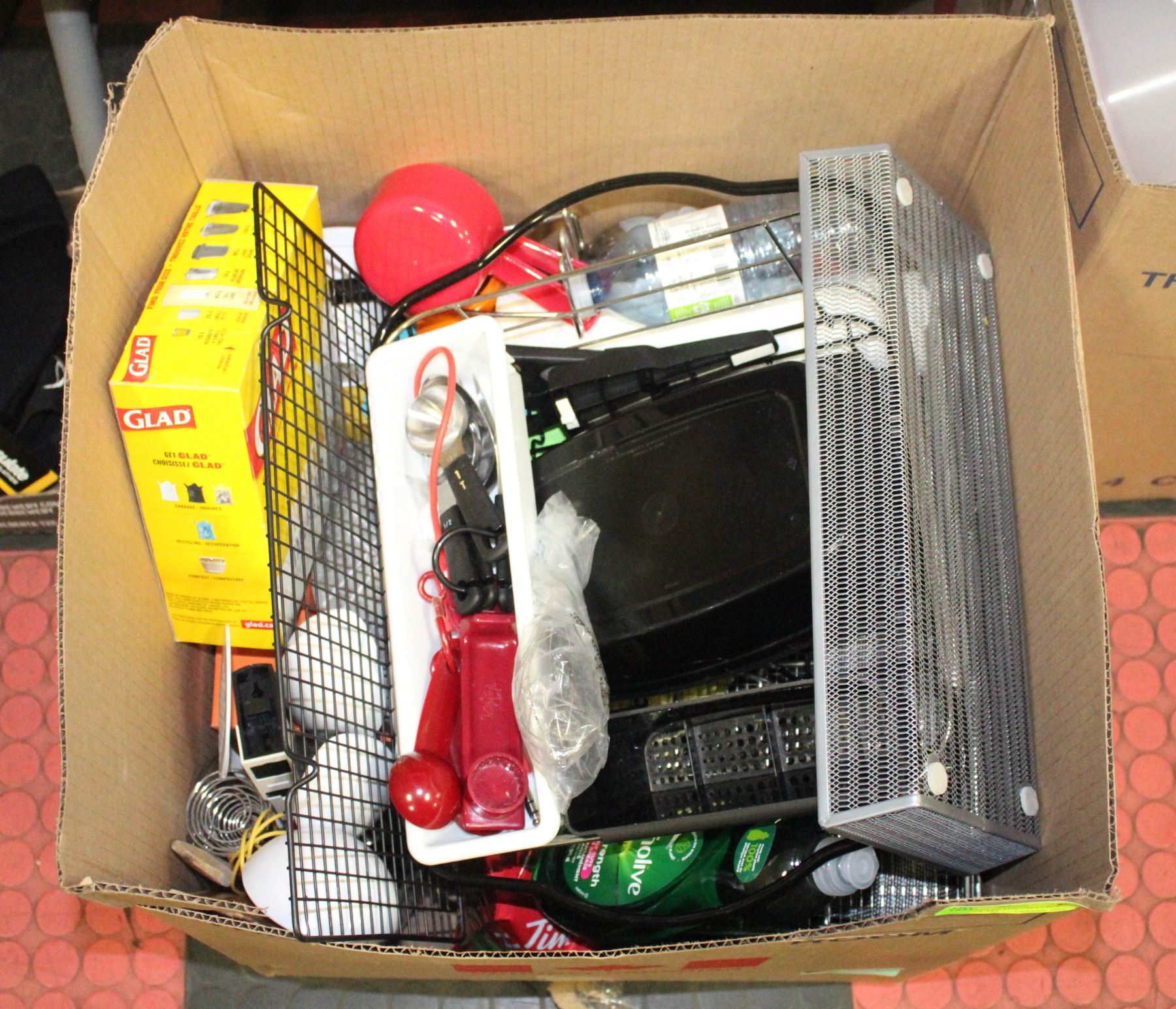 LARGE BOX OF MISC INCLUDES KITCHENWARE