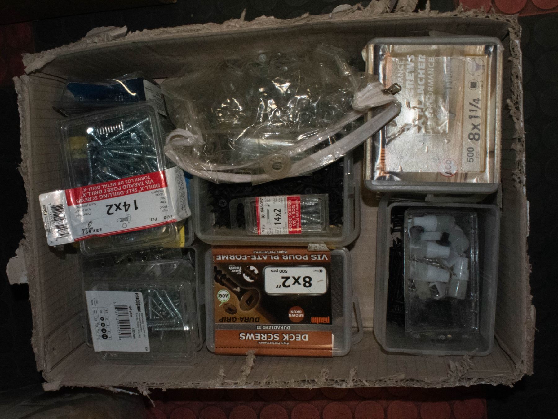 LARGE BOX OF NAILS, BOLTS AND SCREWS
