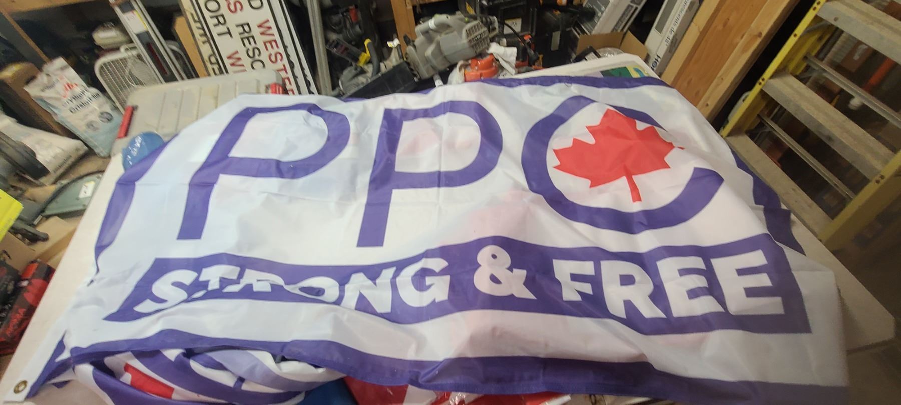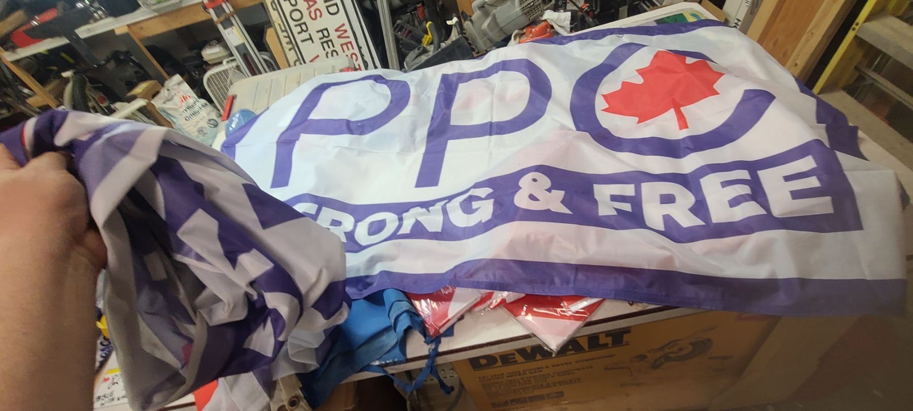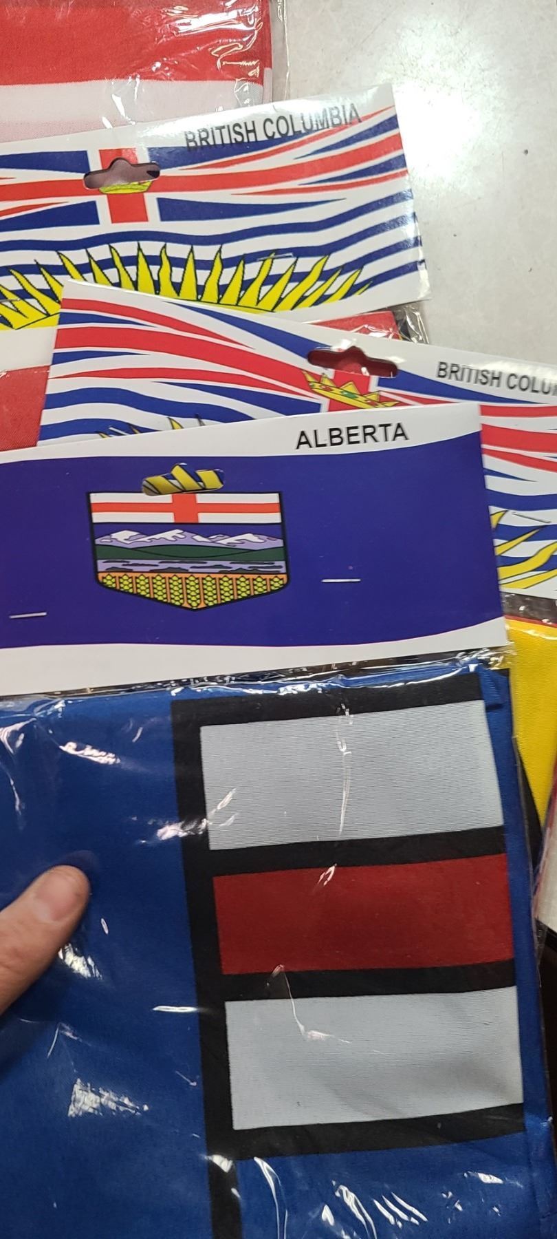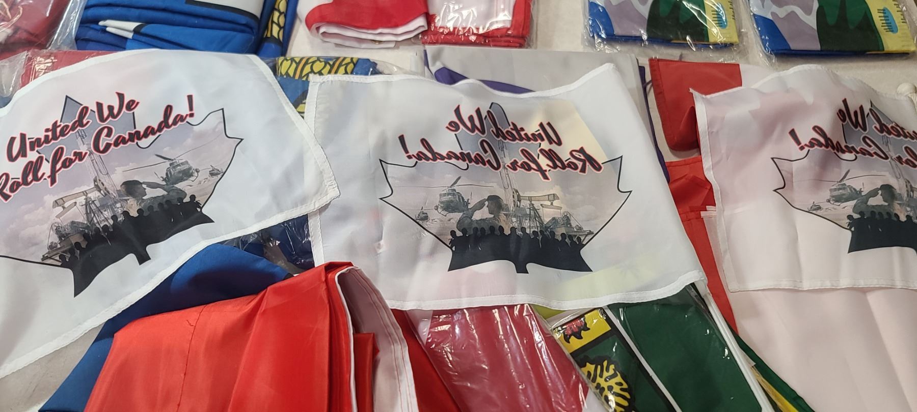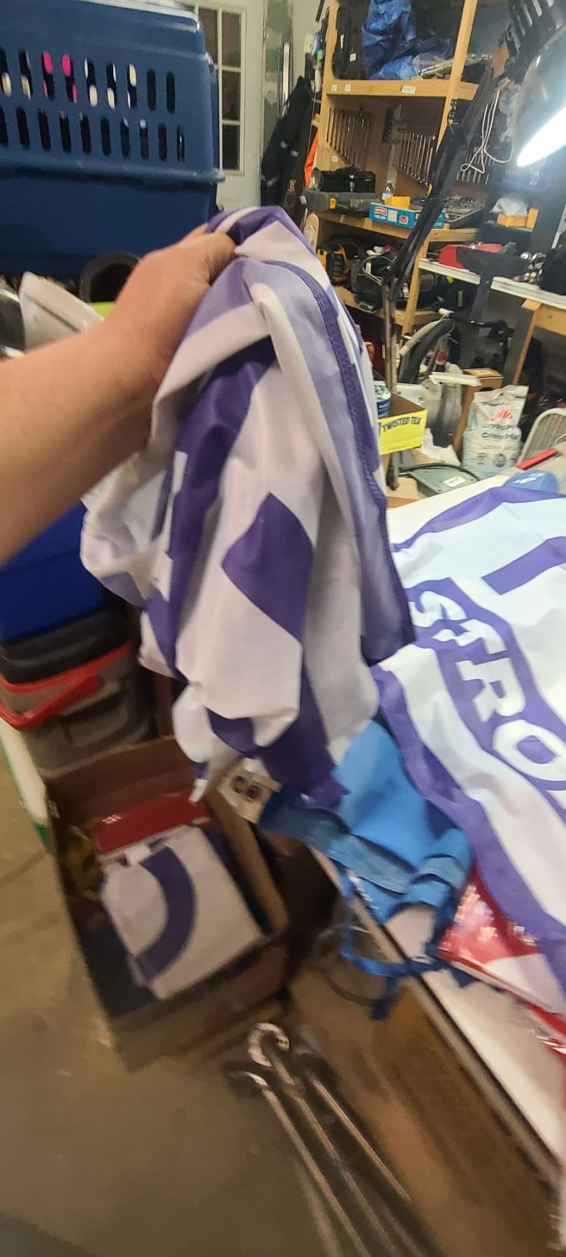 LARGE BOX OF NEW AND USED FLAGS ROUGHLY 25 NEW AND 25 USED