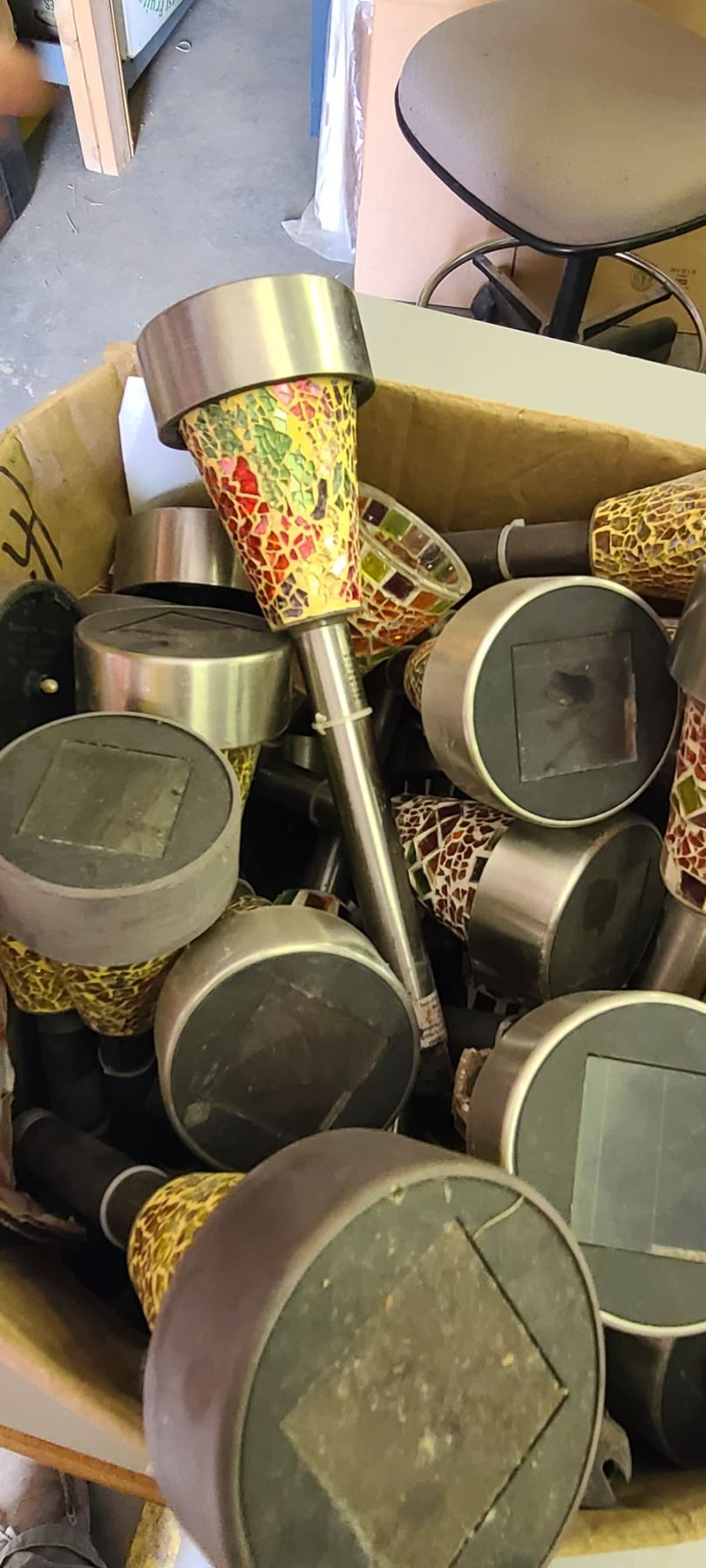 LARGE BOX OF SOLAR POWERED MOSSAIC GARDEN IGHTS