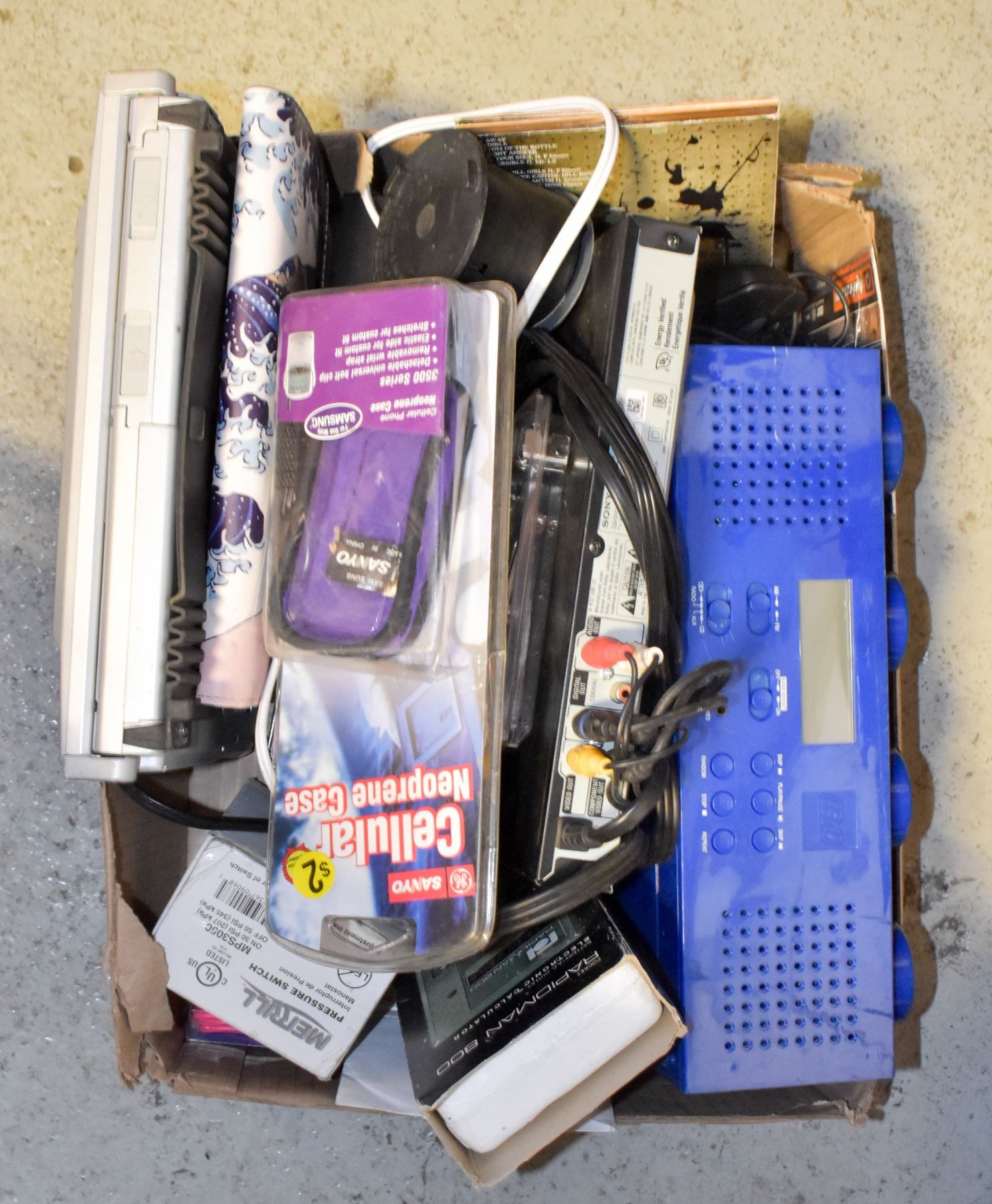 LARGE BOX OF VARIOUS ELECTRONICS WITH LEGO CLOCK