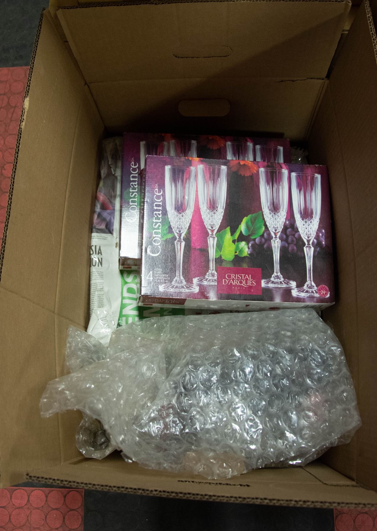 LARGE BOX OF VARIOUS ESTATE GLASSWARE + MORE
