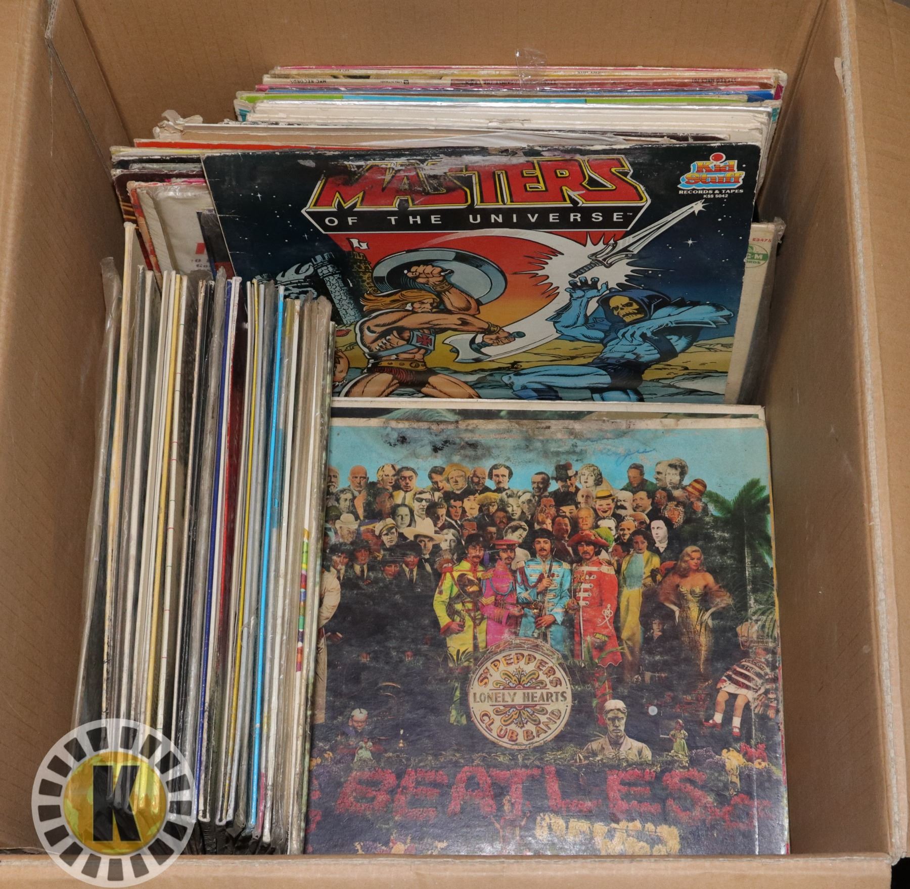 THE BEATLES (SGT PEPPERS LONELY HEART BAND, RUBBER SOUL), CAT STEVENS, MASTERS OF THE UNIVERSE, CHRISTMAS MUSIC, AND MUCH MORE***ALL IN ROUGH CONDITION WITH WATER DAMAGE, COULD BE SOME MOLD. SOLD AS IS***ITEM(S) LOCATED IN LETHBRIDGE ALBERTA