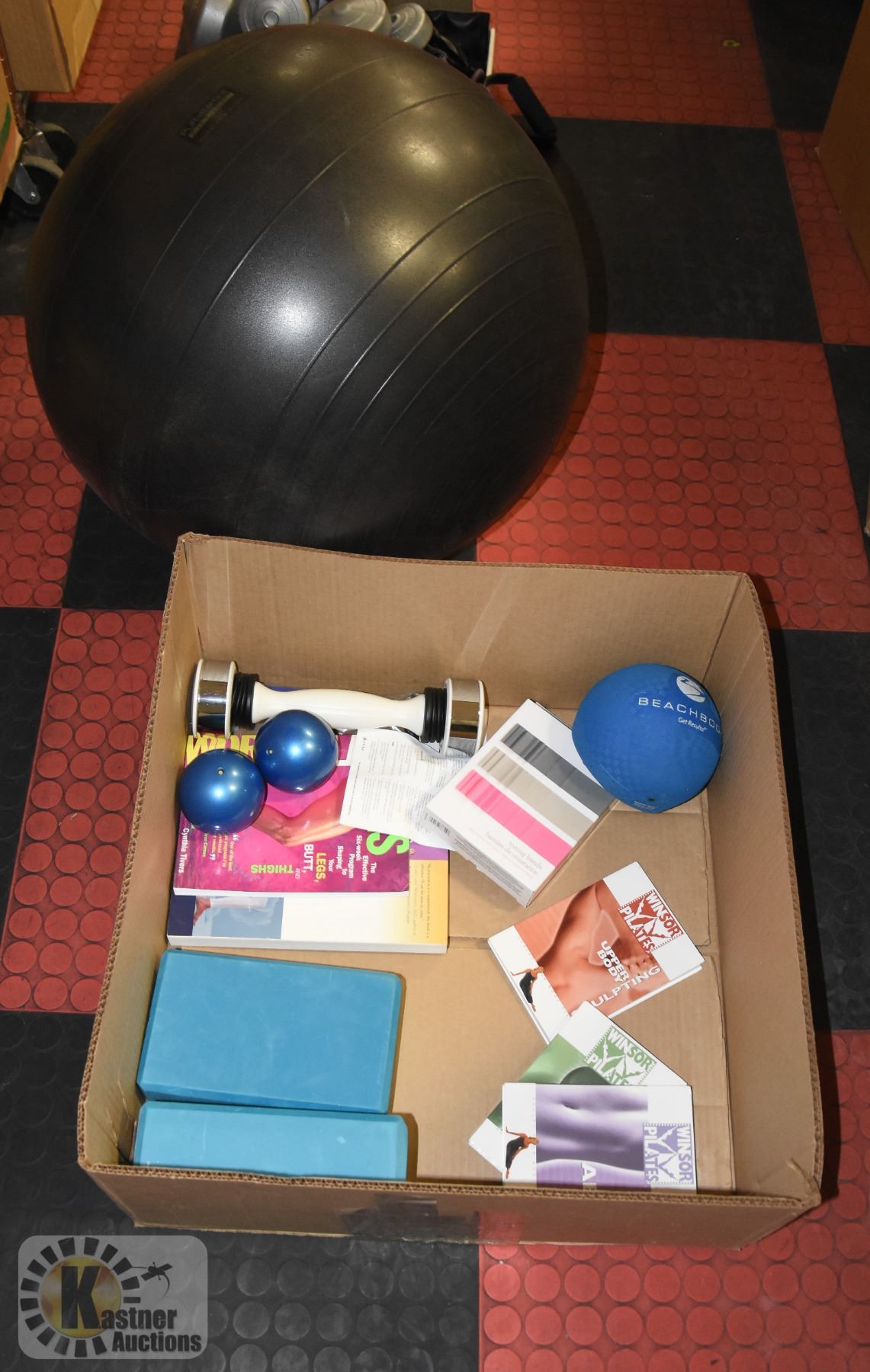 GEAR - LARGE EXERCISE BALANCE BALL, AIR PUMP, SHAKEWEIGHT, FOAM CUBES, LEGS AND YOGA BOOKS, ETC.