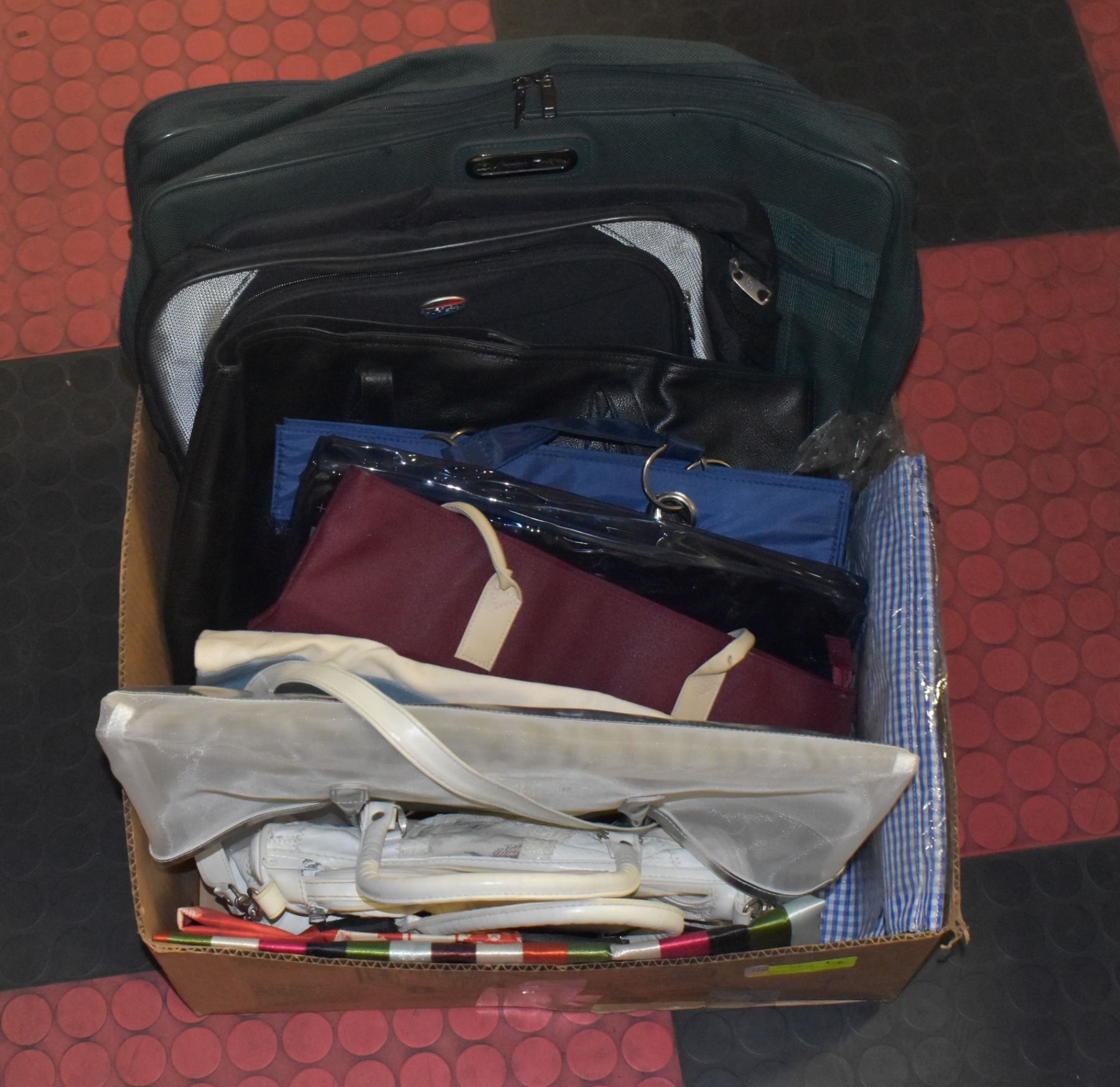LARGE BOX WITH TWO AMERICAN TOURIST BAGS,