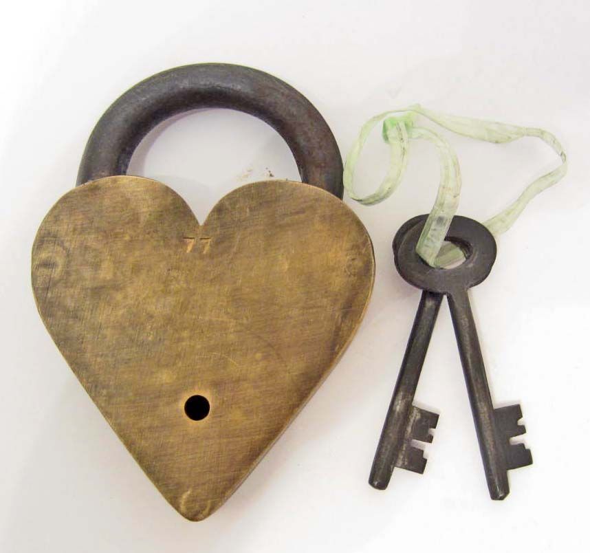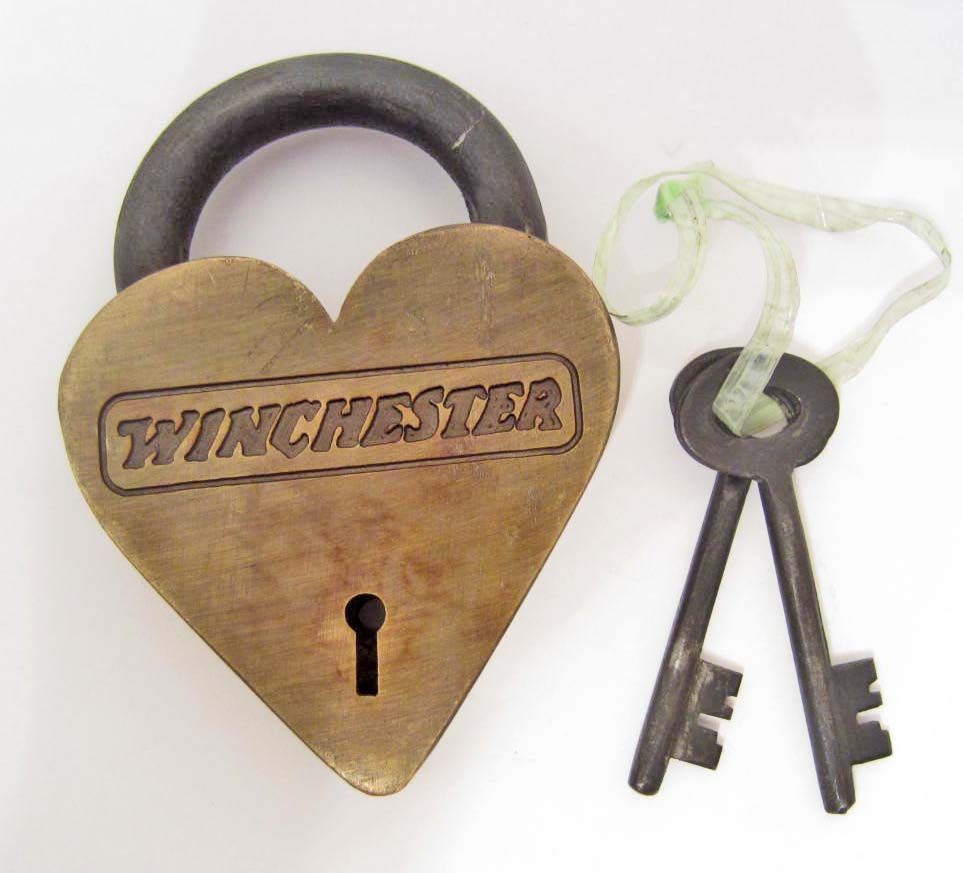 LARGE BRASS WINCHESTER HEART PADLOCK WITH KEYS