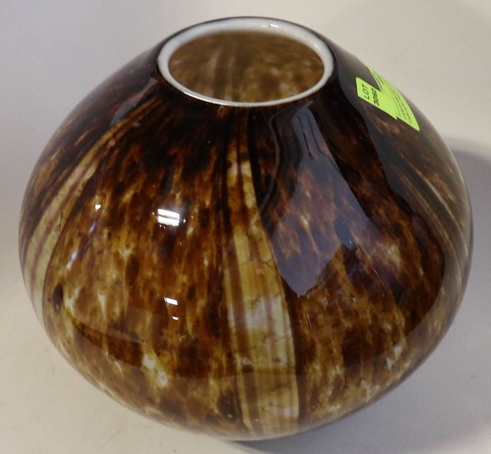 LARGE BROWN STRIPED VASE WITH CASCADE INSIDE 9" X