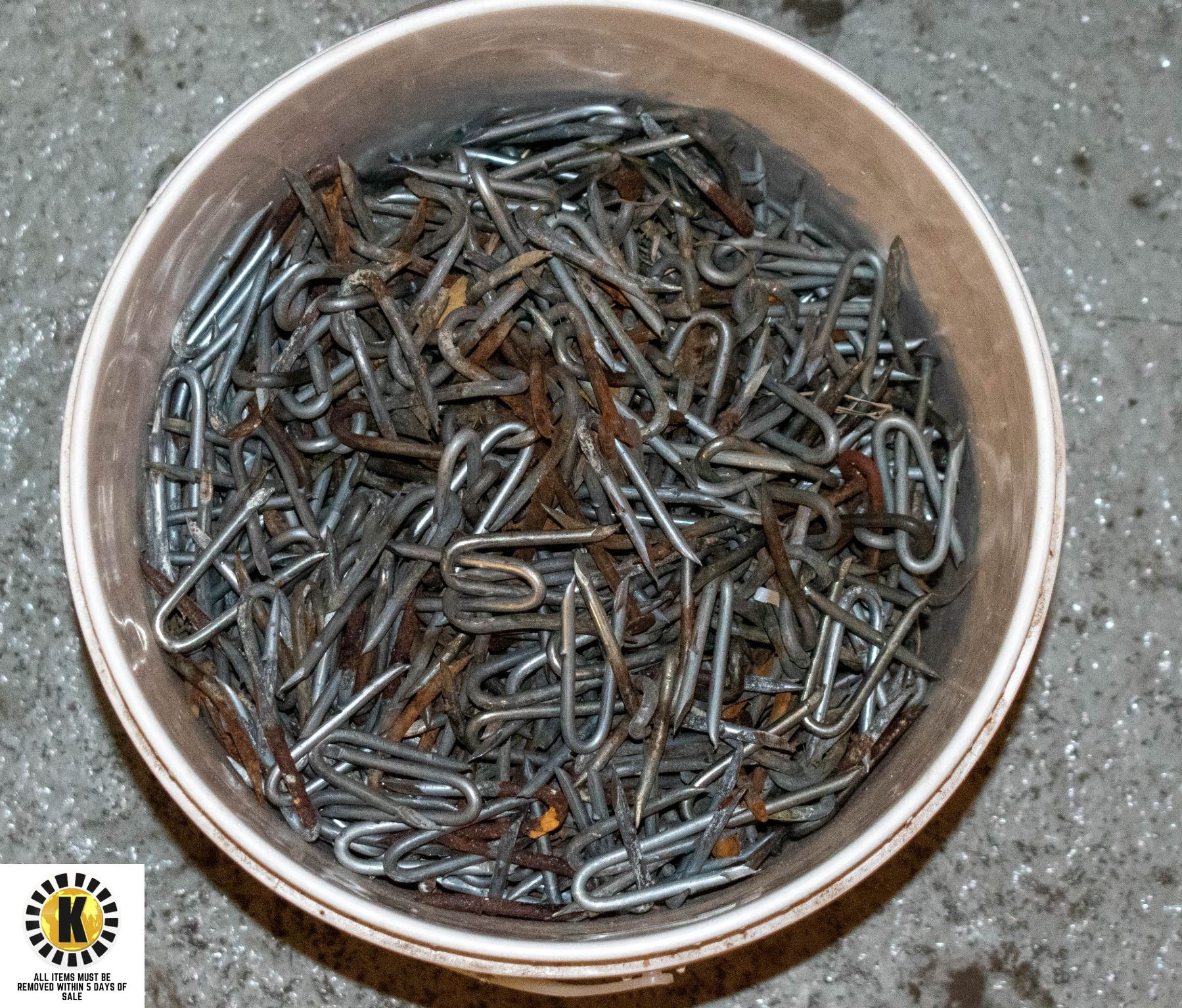 LARGE BUCKET OF GALVANIZED FENCE STAPLE
