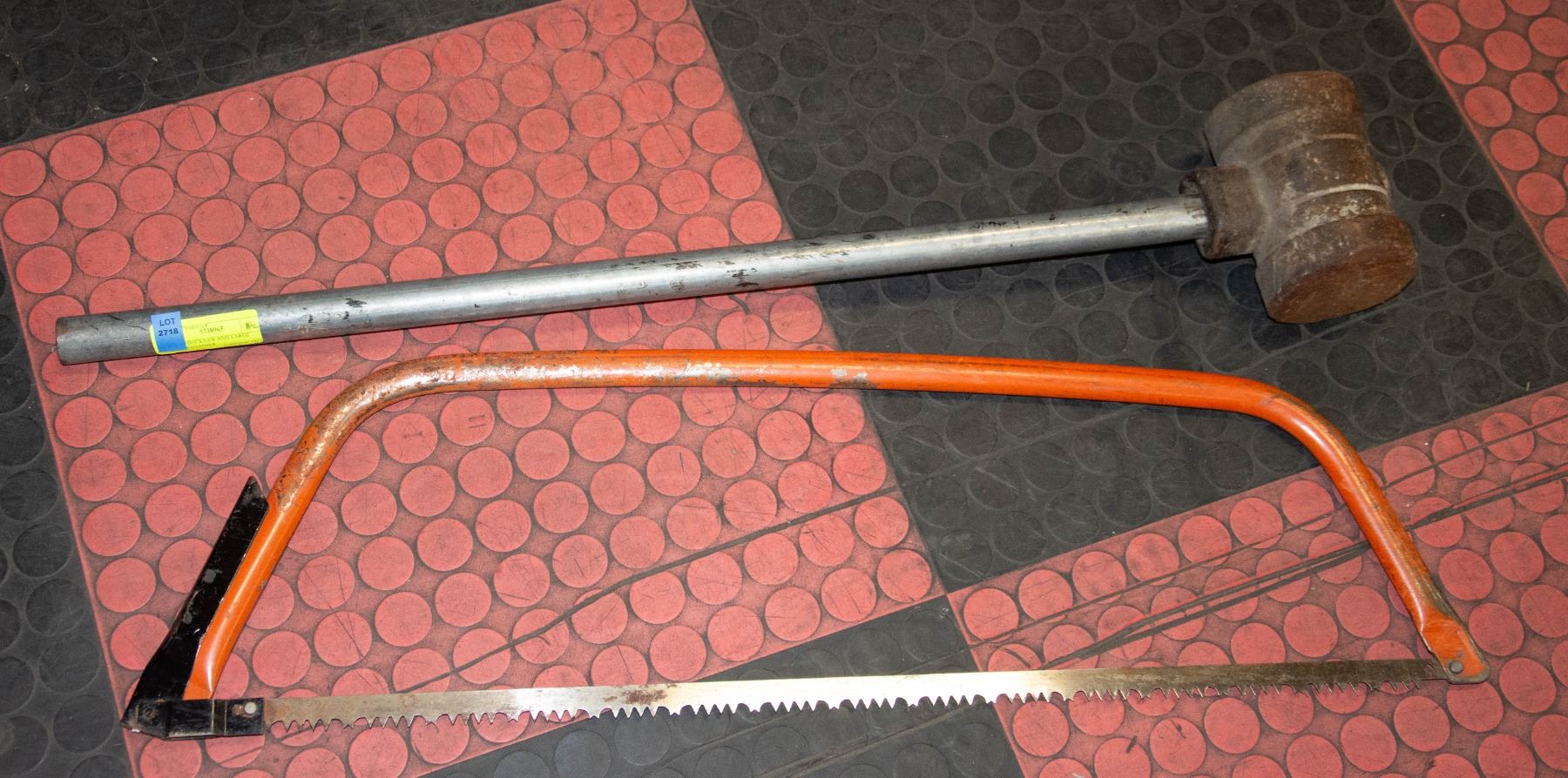 LARGE BUCKSAW AND LARGE SLEDGEHAMMER