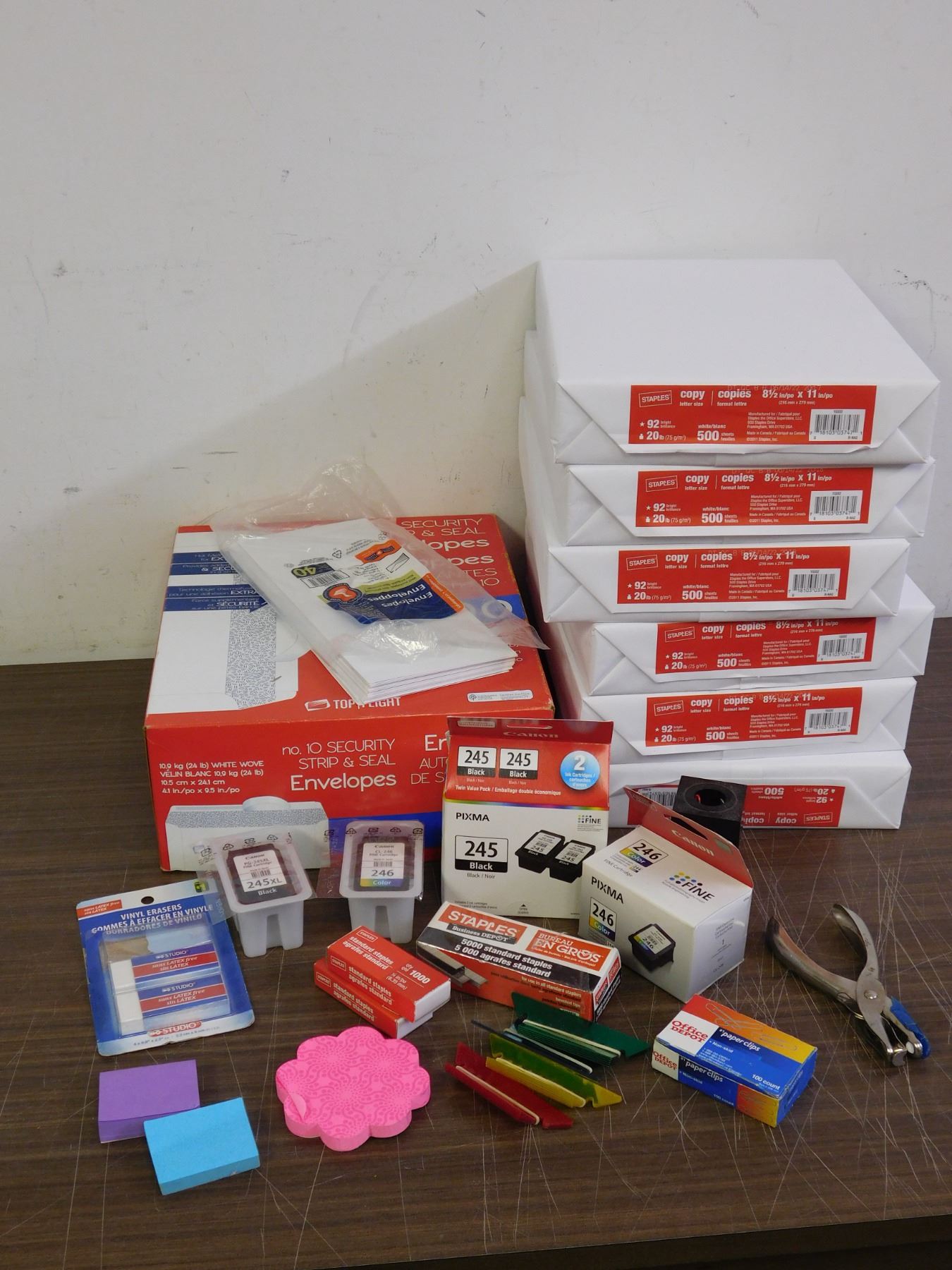LARGE Bundle of Office Supplies Printer Paper, Envelopes, Sticky Pads, Printer Ink Carts, Etc