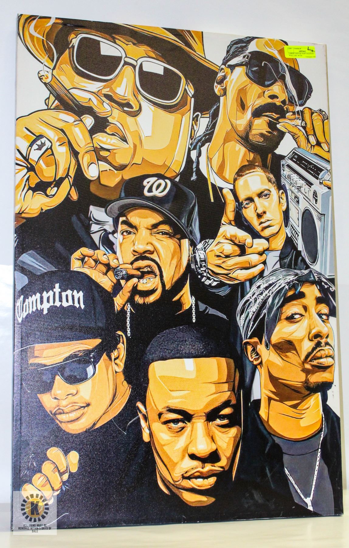 SNOOP DOGG, EMINEM, JAY Z, ICE CUBE, BIGGIE SMALLS, EASY-E (24"L X 36"H) **ALL ITEMS MUST BE REMOVED BY 5PM SATURDAY, APRIL 5TH 2025. ALL REMAINING ITEMS WILL BE SUBJECT TO A $6.00 PER DAY STORAGE CHARGE. ANY ITEMS REMAINING AFTER MONDAY, APRIL 21ST 2025 WILL BE CONSIDERED FORFEITED. NO REFUNDS WILL BE ISSUED FOR FORFEITED ITEMS. TO SCHEDULE A PICK UP APPOINTMENT CLICK HERE
