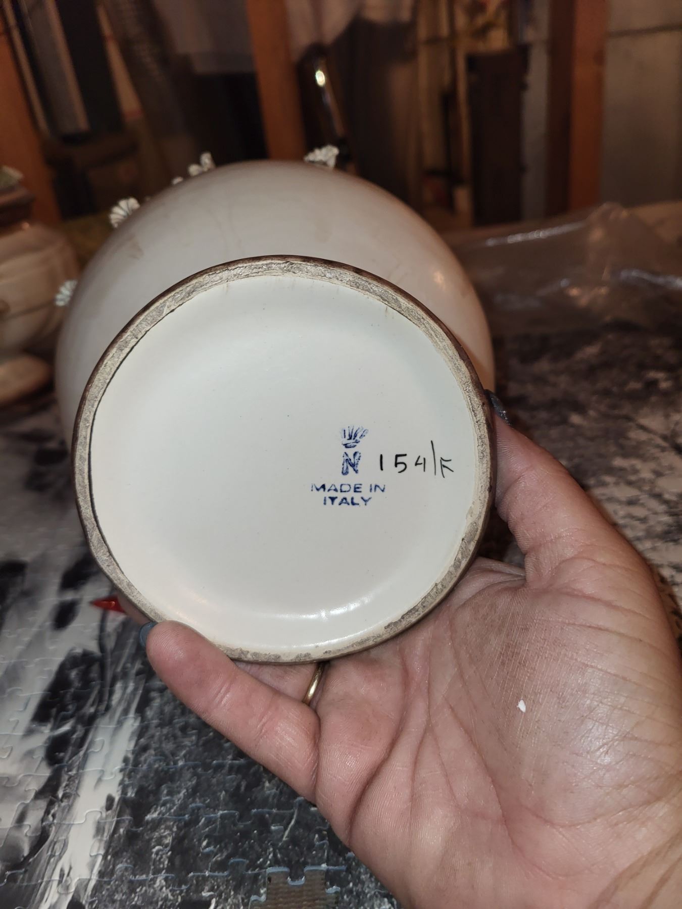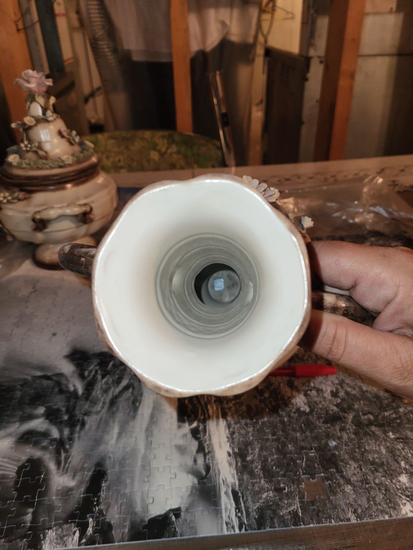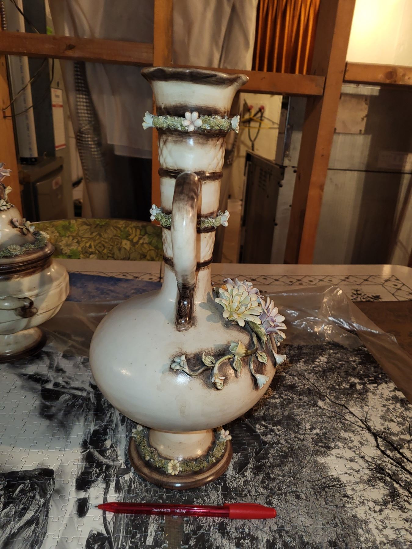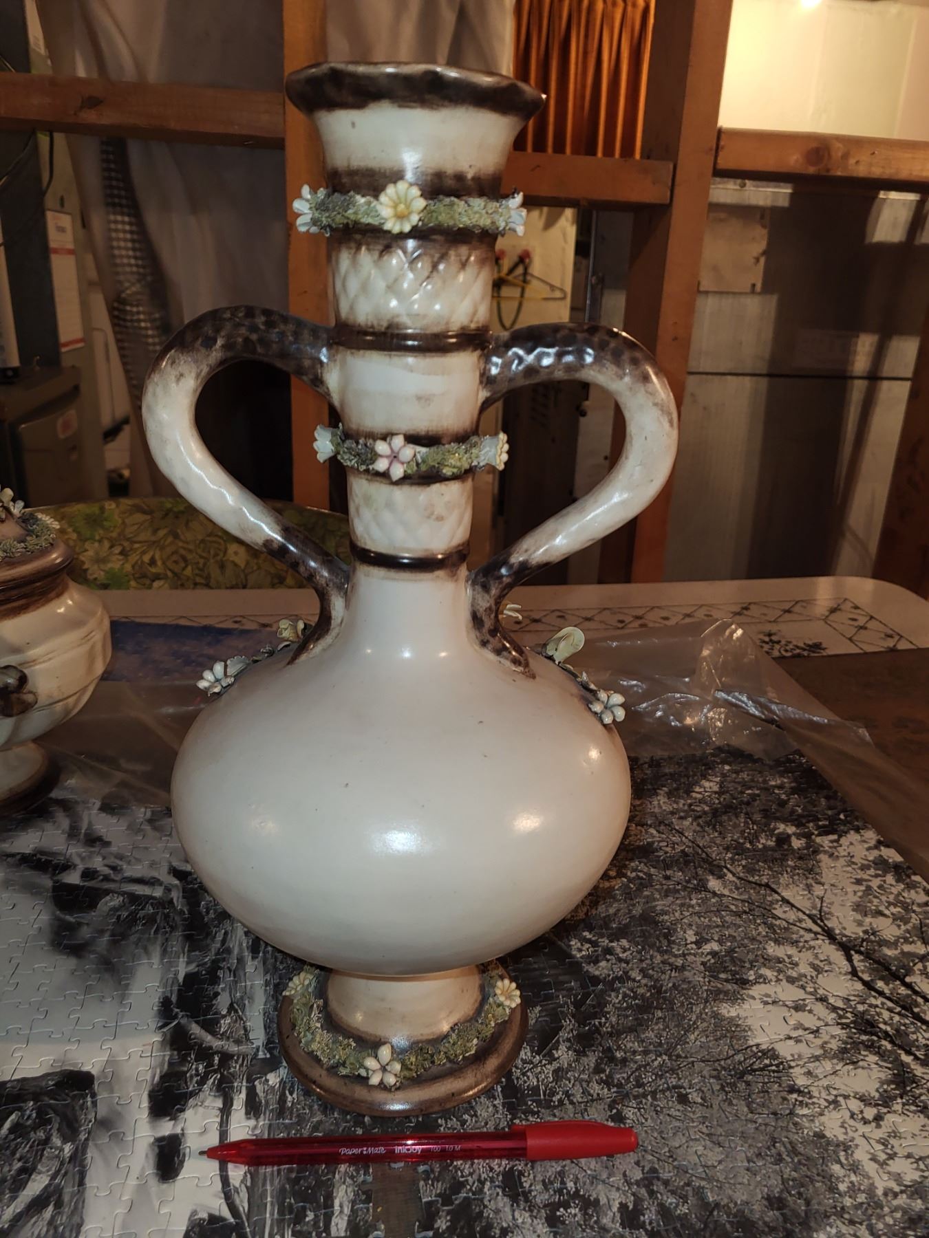 LARGE CAPODIMONTE FLORAL DESIGN VASE. MEASURES 7.5" X 14.25" TALL. NO KNOWN CHIPS