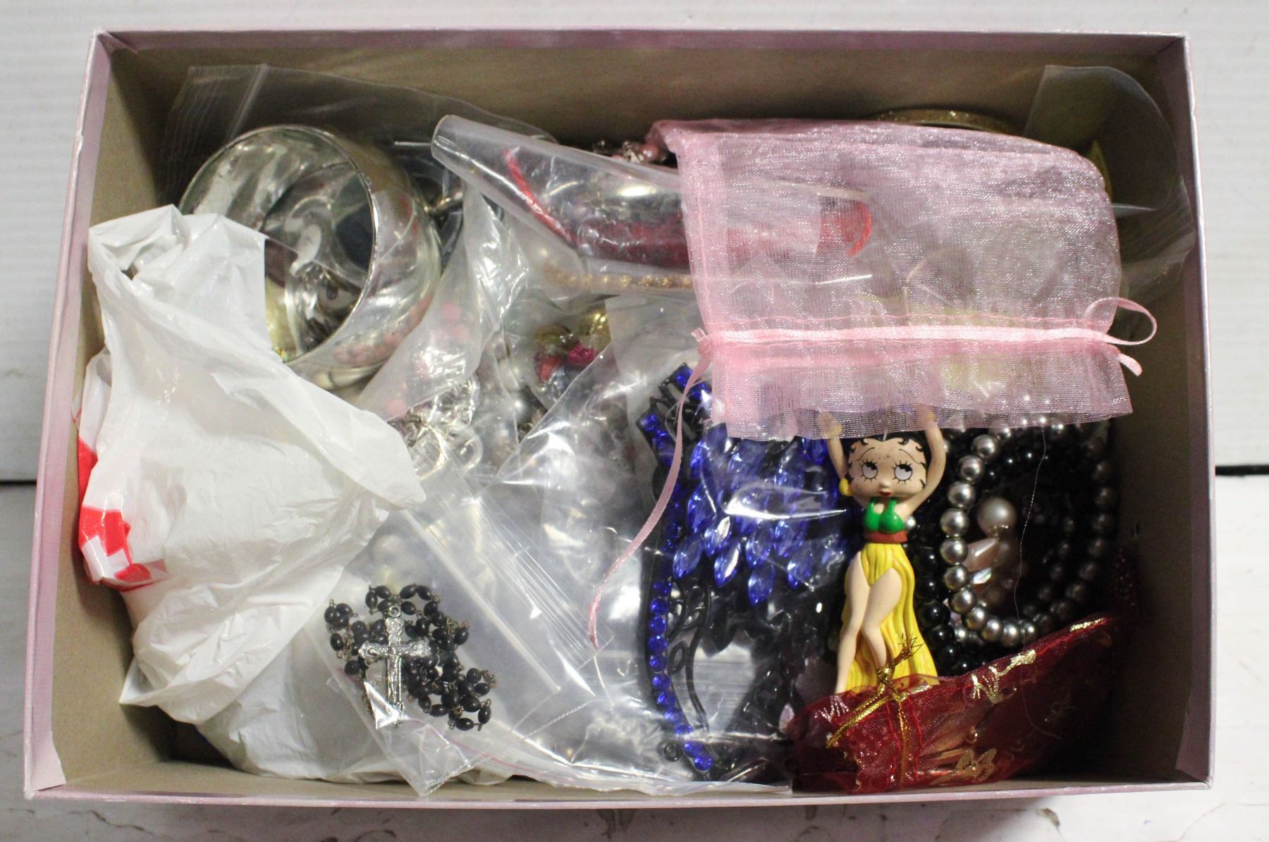 LARGE CARD STORAGE BOX OF ASSORTED JEWELRY