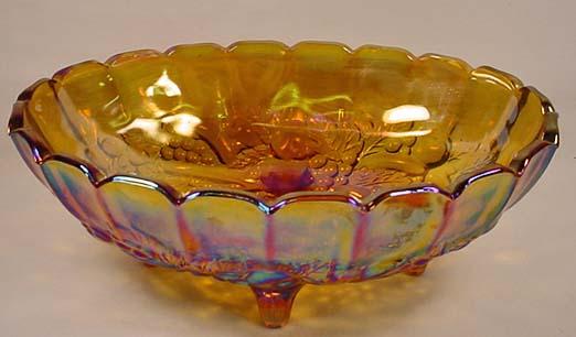 LARGE CARNIVAL GLASS FOOTED BOWL