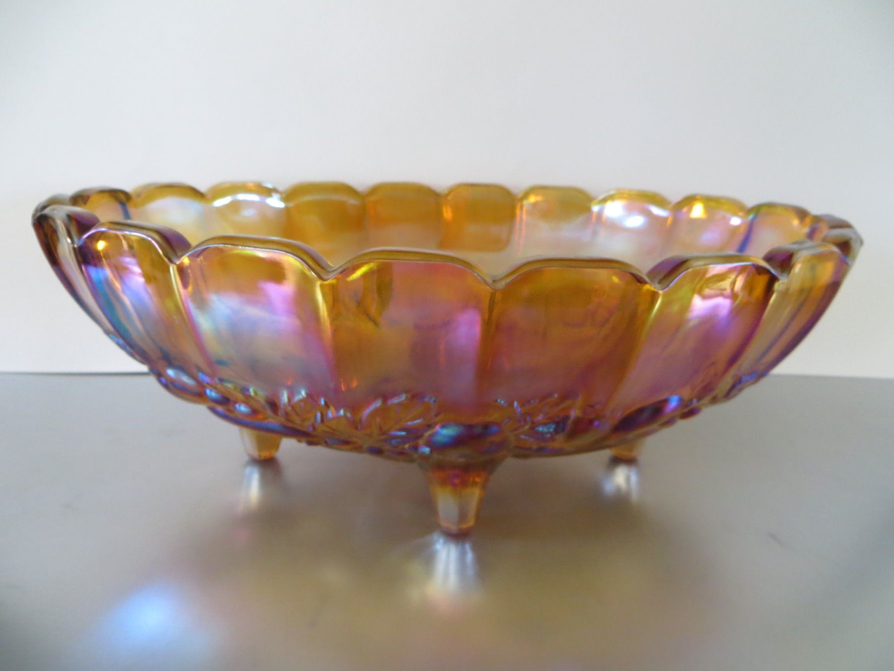 LARGE CARNIVAL GLASS OVAL BOWL (HARVEST GOLD, FTD) *12" LONG X 8.5" WIDE X 4.5" HIGH*