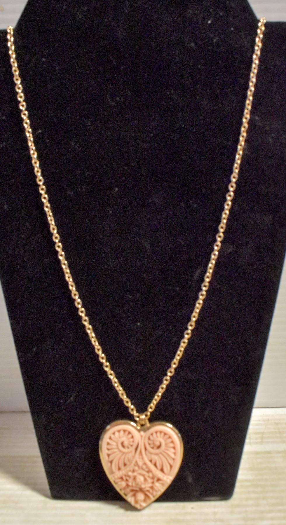 LARGE CARVED ROSE HEART NECKLACE