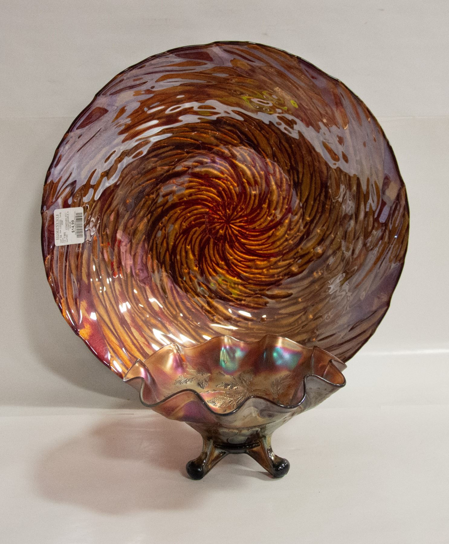 LARGE CENTERPIECE DISH 16", CARNIVAL GLASS CANDY