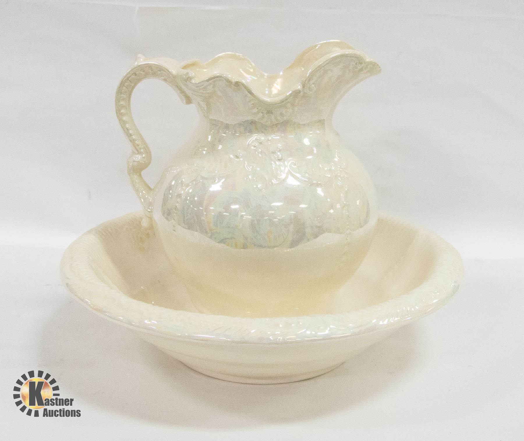 LARGE CERAMIC GLAZED WASH BASIN & PITCHER