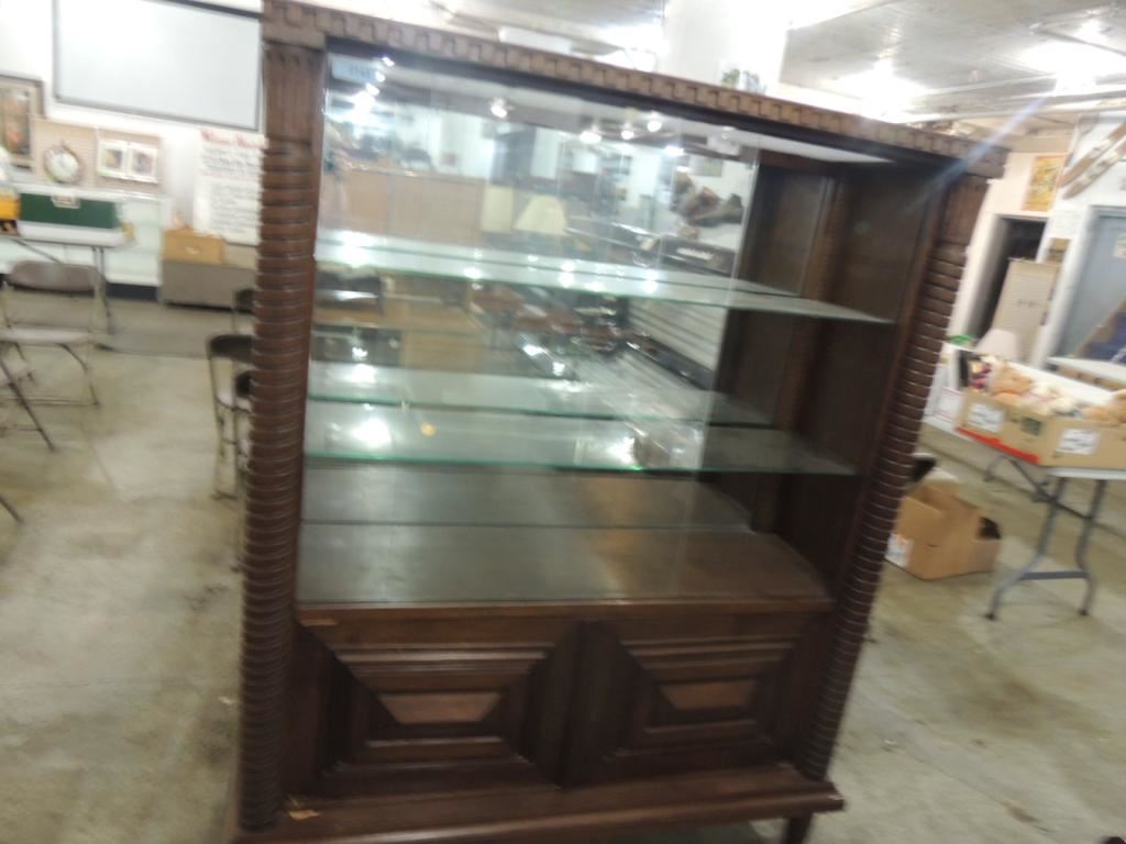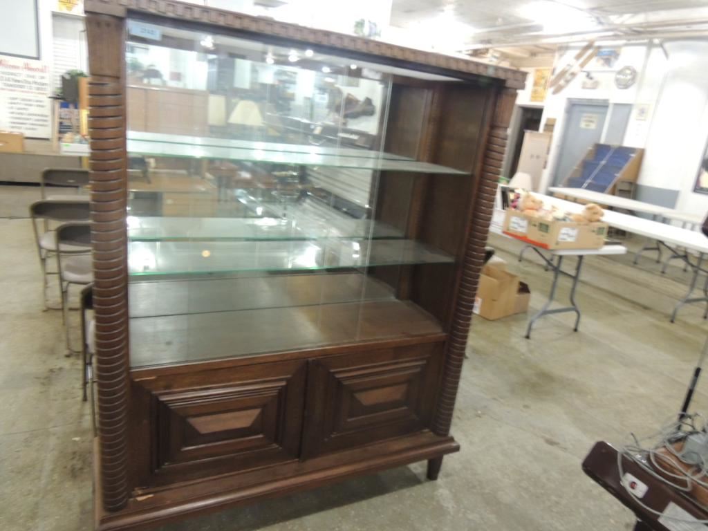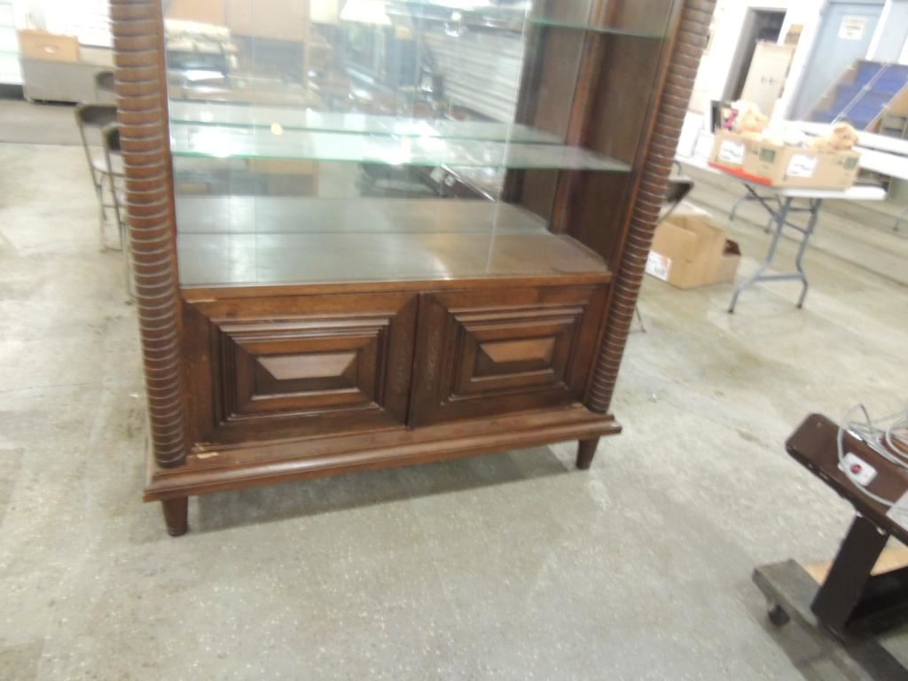 LARGE CHINA CABINET CLASS SHELVES DOOR MIRROR BACK DETAILED WOODEN 51W X 65H AS SHOWN SEE PHOTO FOR MORE DETAILS