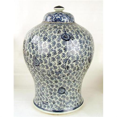 Large and impressive Chinese Blue and White covered jar or vase. Stands a impressive 15" tall and a whopping 10" across! Impressive piece circa 1800. Lid has a chip and crack base has a line but perfect otherwise. Nice detailing and perfect for even the most advanced collection of Ching blue and whites.