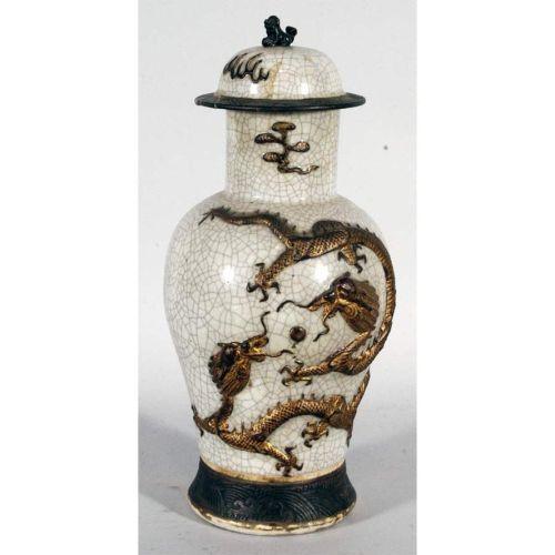 LARGE CHINESE CRACKLE GLAZE URN 18" high, the lid broken and glued, signed on bottom CONDITION REPORT: lid broken- otherwise excellent. PACKING AND SHIPPING: We offer packing (double boxed in most cases) and shipping of this item within the Continental United States by USPS or UPS (our choice- boxes over 30lbs or oversized may be recalculated based on buyer's location), NOT INCLUDING INSURANCE (it will be added when we know the sales price) for $50