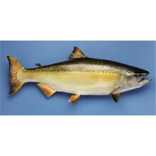 <B>LARGE CHINOOK SALMON</B></I><BR> <I>Oncorhynchus tshawytscha</B></I><BR>This monster fish is 43½ inches long, mounted using the real skin and exhibiting good-quality taxidermy. The Chinook or "King" Salmon is the largest of its genus, reaching weights up to 100 lbs. This one is around a 42-pounder. Found north from Monterey Bay, the Chinook, like other salmon, varies in color with age, sex, and season. <BR><BR><b>Shipping:</b> Requires 3rd Party Shipping (<a target="_blank" href="http://www.heritageauctions.com/common/shipping.php">view shipping information</a>)