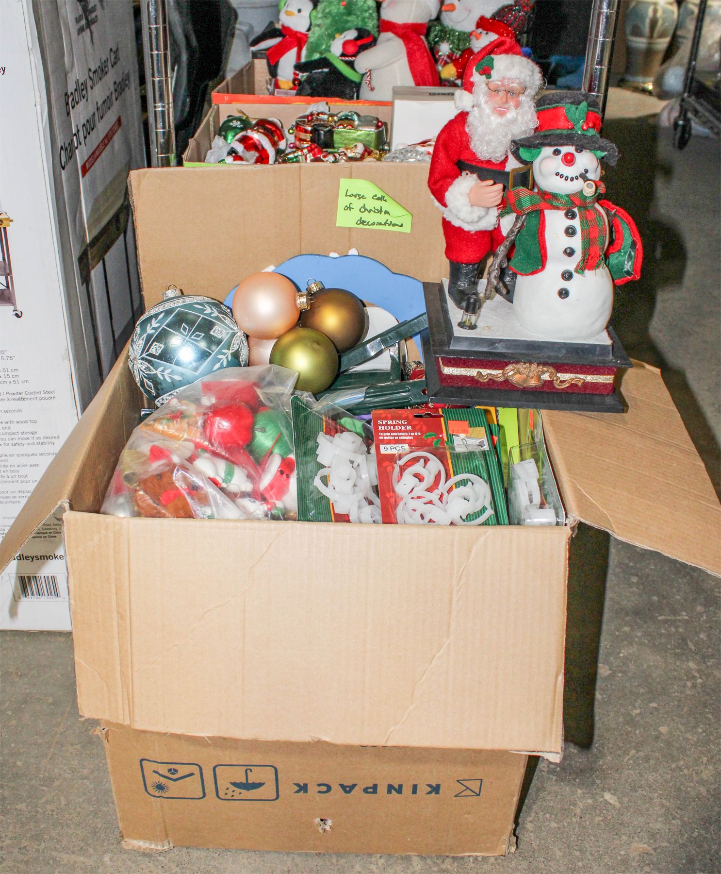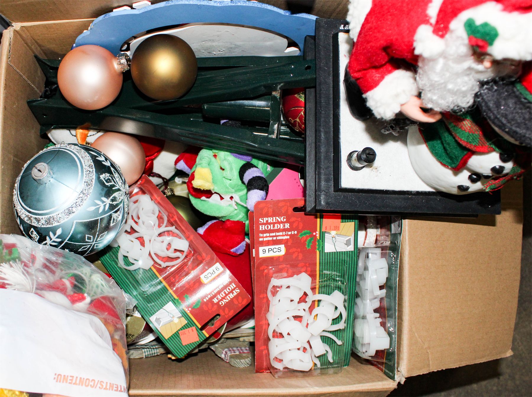 BOX INCLUDES AN ASSORTMENT OF CHRISTMAS THEMED DECORATIONS AND ACCESSORIES
