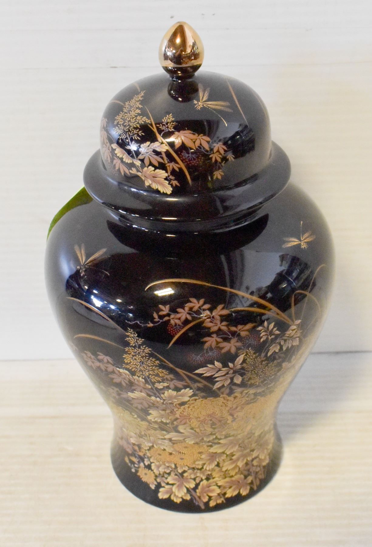 LARGE CLOISONNE BIRD JAR BLACK