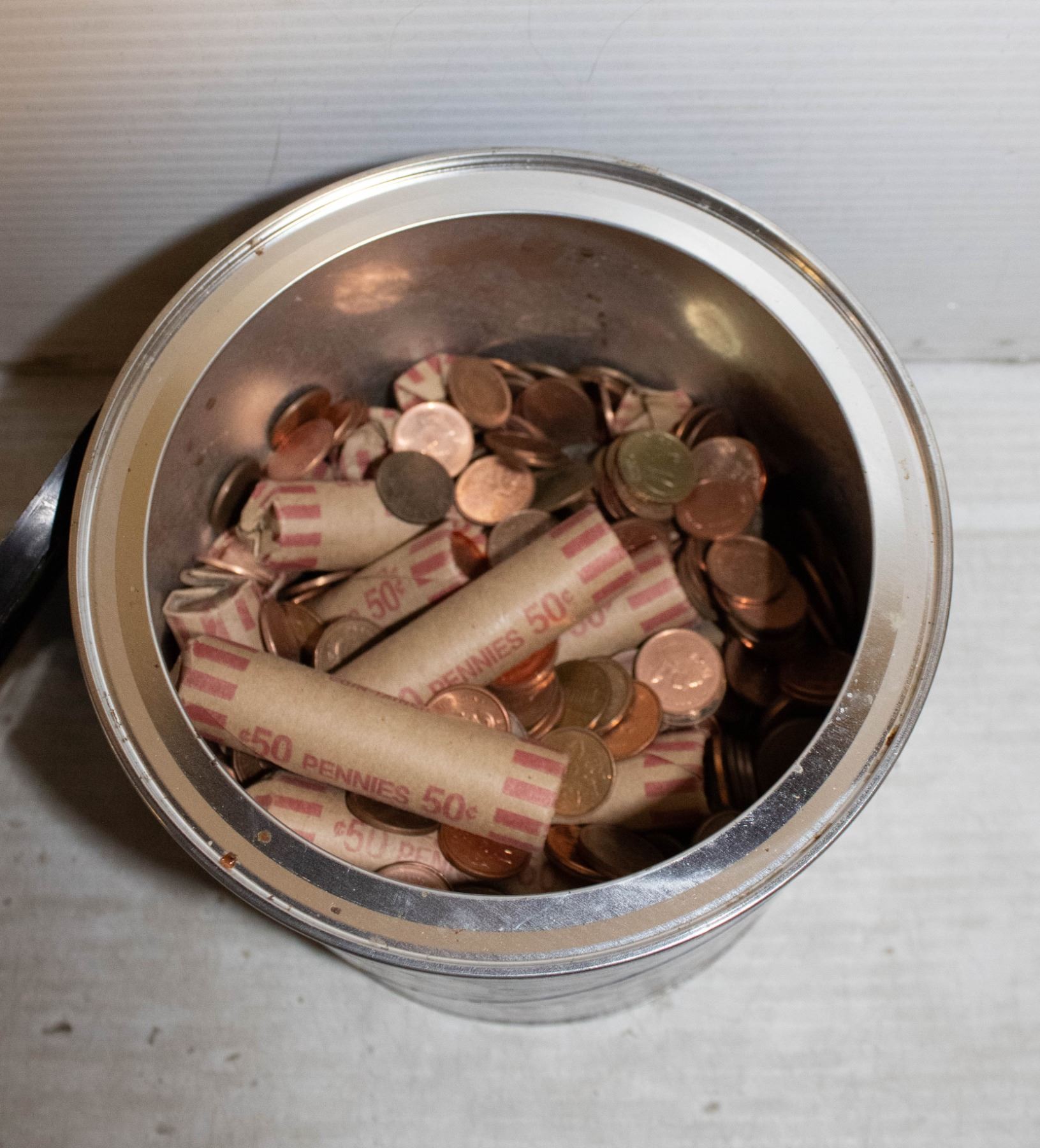 LARGE COFFEE CAN 80% FULL OF PENNIES