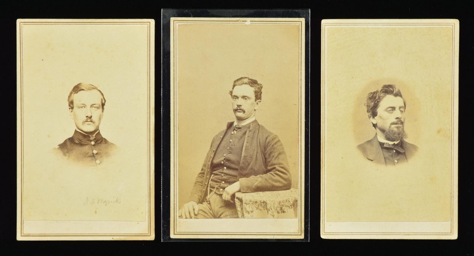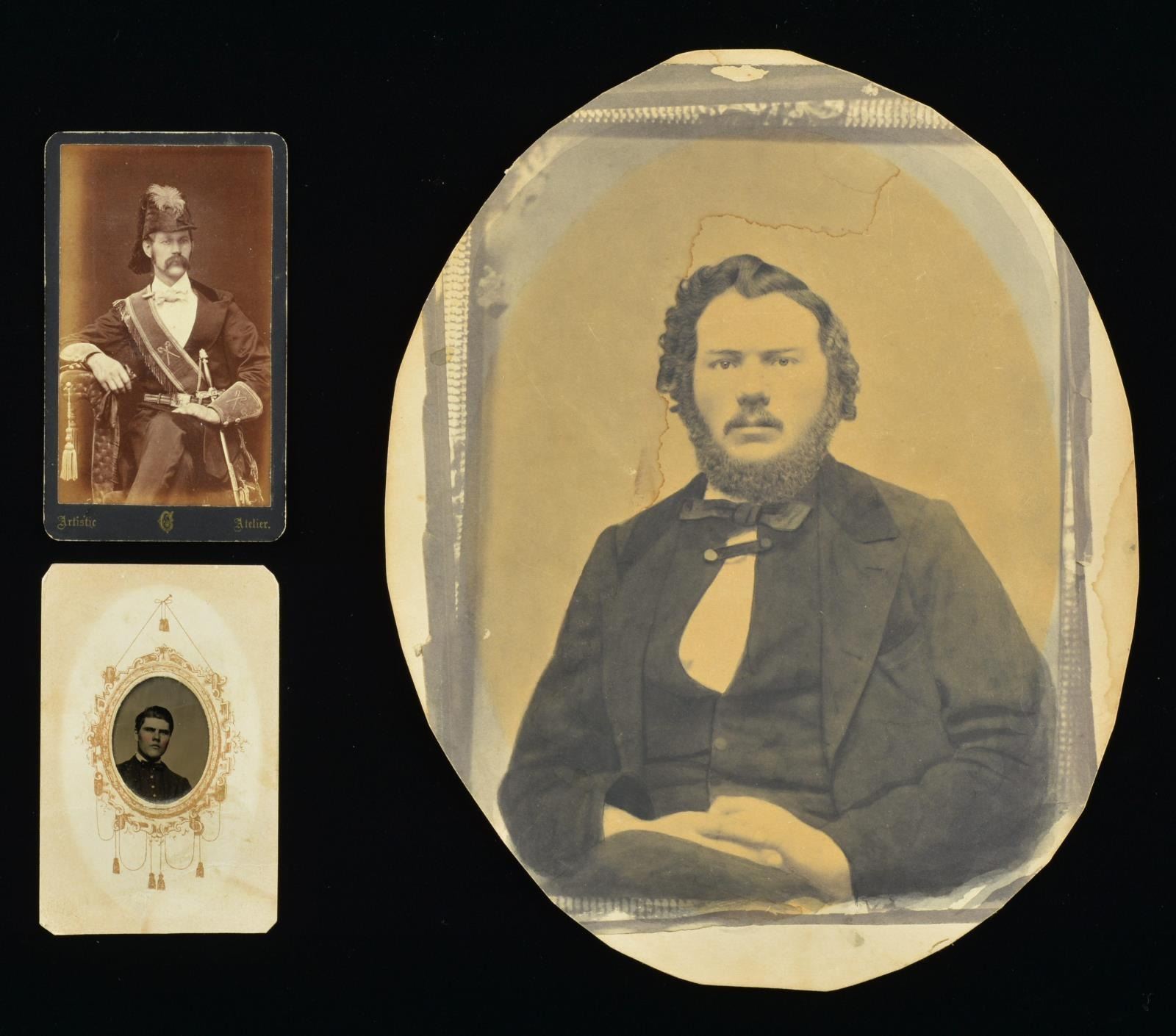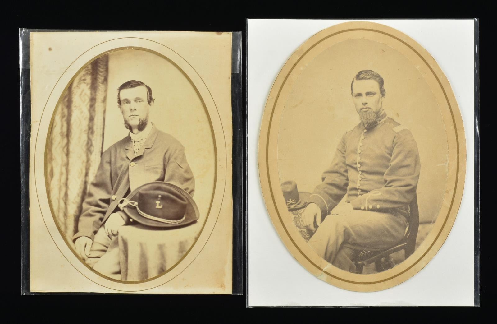 2. Two CDVs, one signed ad lieutenant Thaddeus Little, entered service 1861 as private, several promotions, severely wounded at Sailor’s Creek April 6, 1865. There is 2nd CDV of enlisted man with shell jacket also thought to be Little.