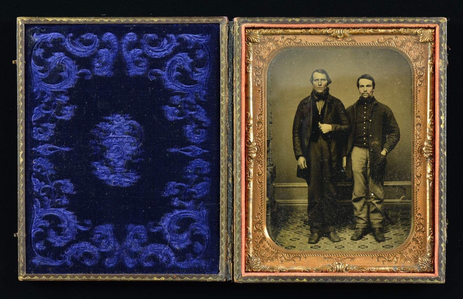 3. Half Plate tintype of Ruel Rogers with his father Francis, from Industry Maine. Fine condition with crisp fine detail in good case.