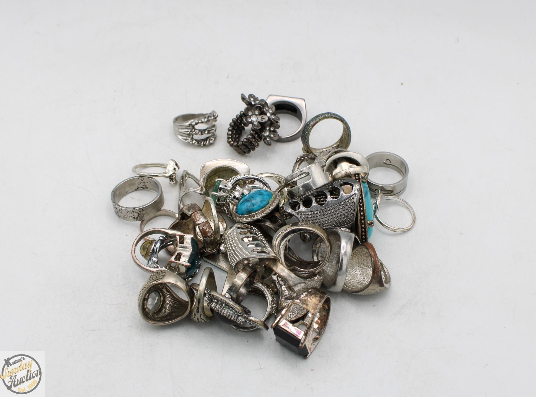 LARGE COLLECTION OF SILVER TONE RINGS VARIOUS SIZE
